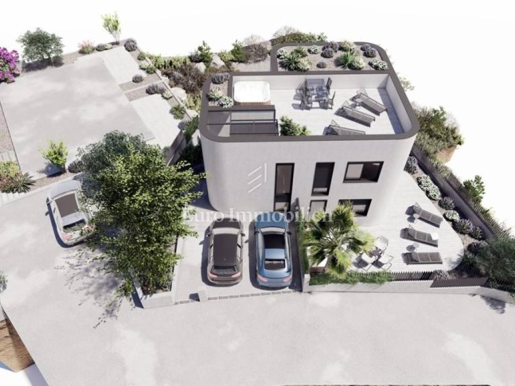 In a smaller building of only two apartments, an apartment on the first floor with a roof terrace is for sale. The apartment consists of two bedrooms, a living room with a kitchen and dining room, a bathroom, a toilet and two spacious terraces. One terrace is located on the ground floor, while the apartment also has a large roof terrace. The total area of the apartment with the terrace is 121.37m2. The area of the apartment is 61.58m2. There is also a shared storage room for use with the apartment. It has one parking space.