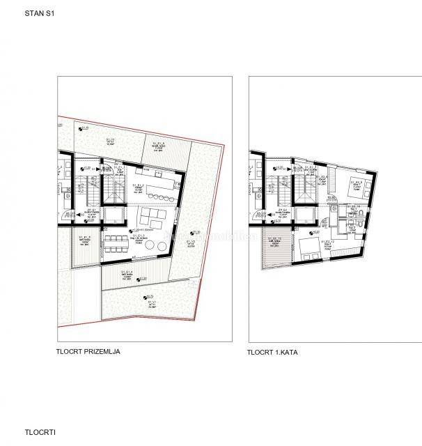 S1 - GROUND FLOOR + 1ST FLOOR + 2ND FLOOR (entrance (4.86 m2), kitchen (15.75 m2), dining room + living room (26.85 m2), 3 covered terraces (6.93 m2, 2 x 4.41 m2), 2 uncovered terraces (2.39 m2, 2.21 m2), 2 entrances + 2 staircases (2 x 7.12 m2), 2 hallways (2 x 7.36 m2), 4 bedrooms (2 x 11.57 m2, 2 x 15.70 m2), 4 bathrooms (2 x 3.12 m2, 2 x 3.06 m2), roof terrace (11.17 m2), elevator entrance (1.84 m2), 3 gardens (4.83 m2, 6.99 m2, 3.63 m2)) - 192.12 m2 - 768480 EUR