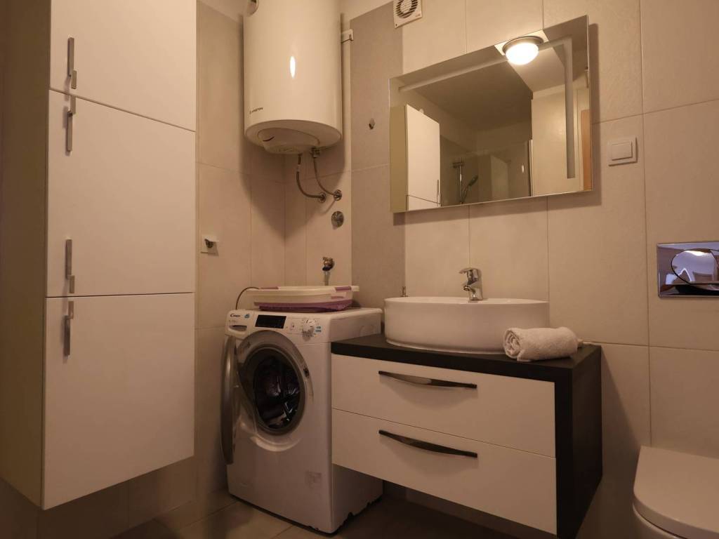 In a quiet location near the beaches is an apartment on the second floor of a recent building with a total area of 60,78m2. The apartment is sunny, with excellent layout, and consists of an entrance hall, kitchen with dining room, living room with access to a spacious terrace, two bedrooms, bathroom and parking space in front of the building. The apartment is equipped with air conditioning unit, quality ceramics and laminate, pvc joinery, fully furnished and as such is for sale. Nearby is a rich gastronomic offer of restaurants and services which makes it ideal as a tourist investment or for a quiet family life.