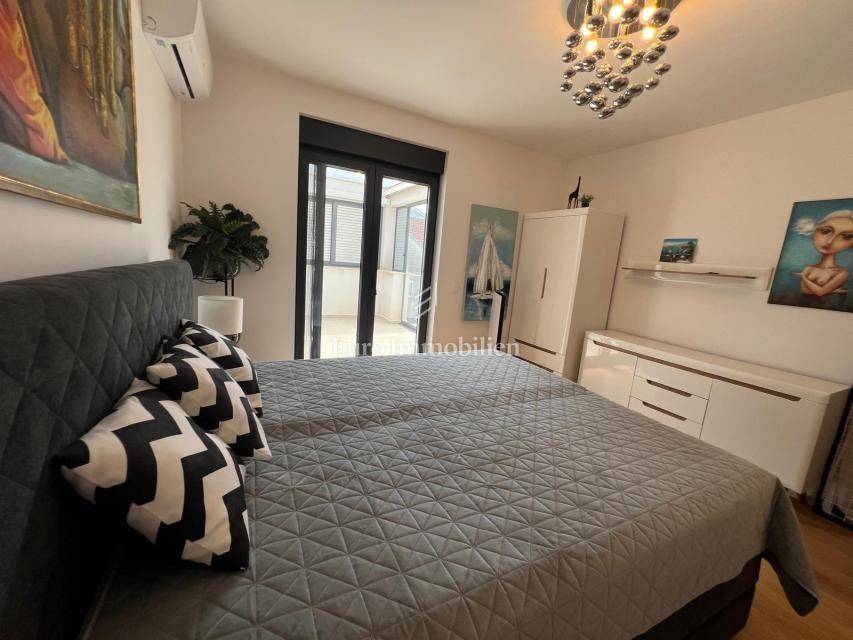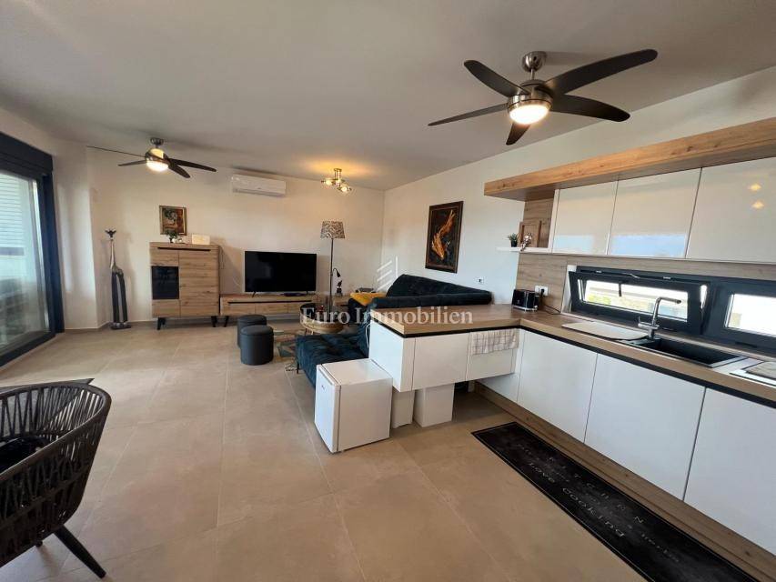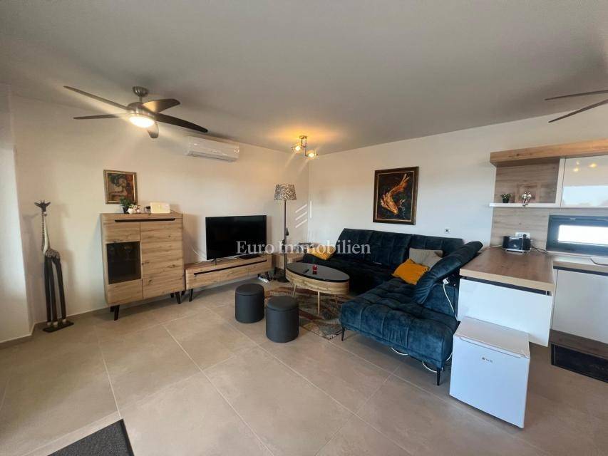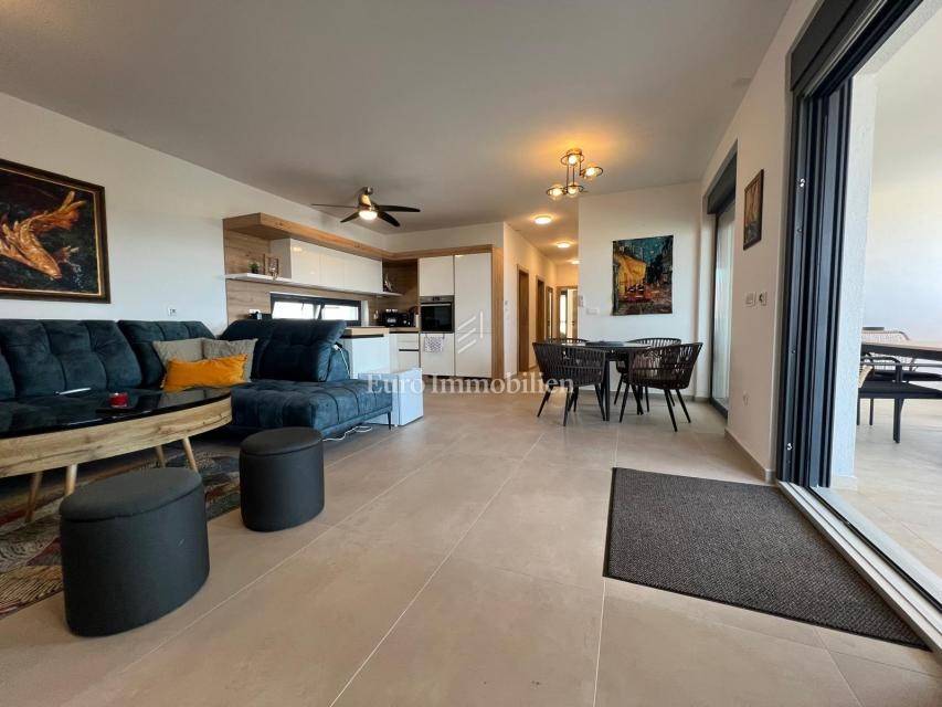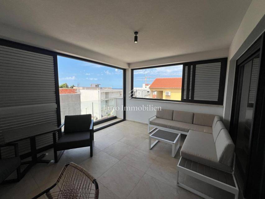 Apartment on the second floor of a residential building in Diklovac, Zadar! The property is being sold fully furnished. The apartment consists of a hallway, living room, kitchen, dining room, bathroom, two bedrooms, storage room. It also has a covered terrace, a staircase to the flat roof and an uncovered terrace on the flat roof. The apartment also includes two parking spaces.