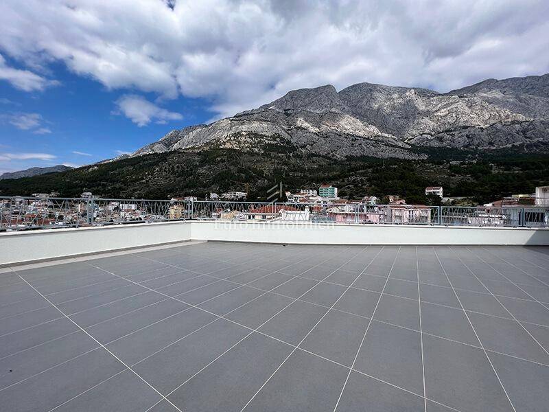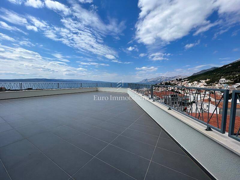 The subject of sale is a two-story three-bedroom apartment of 162.17 m2 located on the third floor and high attic of a building with an elevator. It consists of a kitchen and dining room, living room, hallway, toilet, bathroom, bedroom and a south-facing balcony on the lower floor. The high attic has two bedrooms, two bathrooms, laundry room, two dressing rooms, hallway and a spacious roof terrace of 155.85 m2 from which a fantastic panoramic view of the sea, islands and Baška Voda can be enjoyed, which cannot be blocked off.