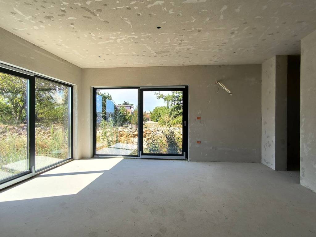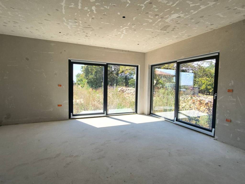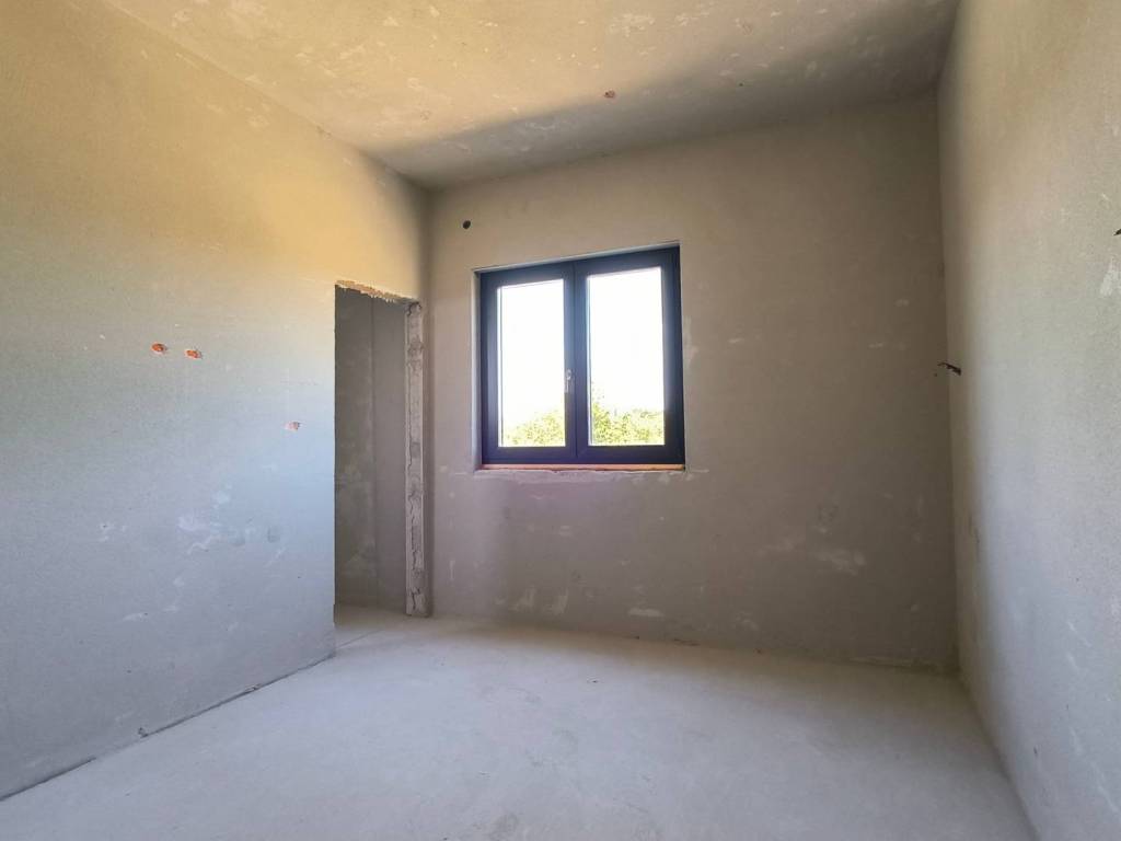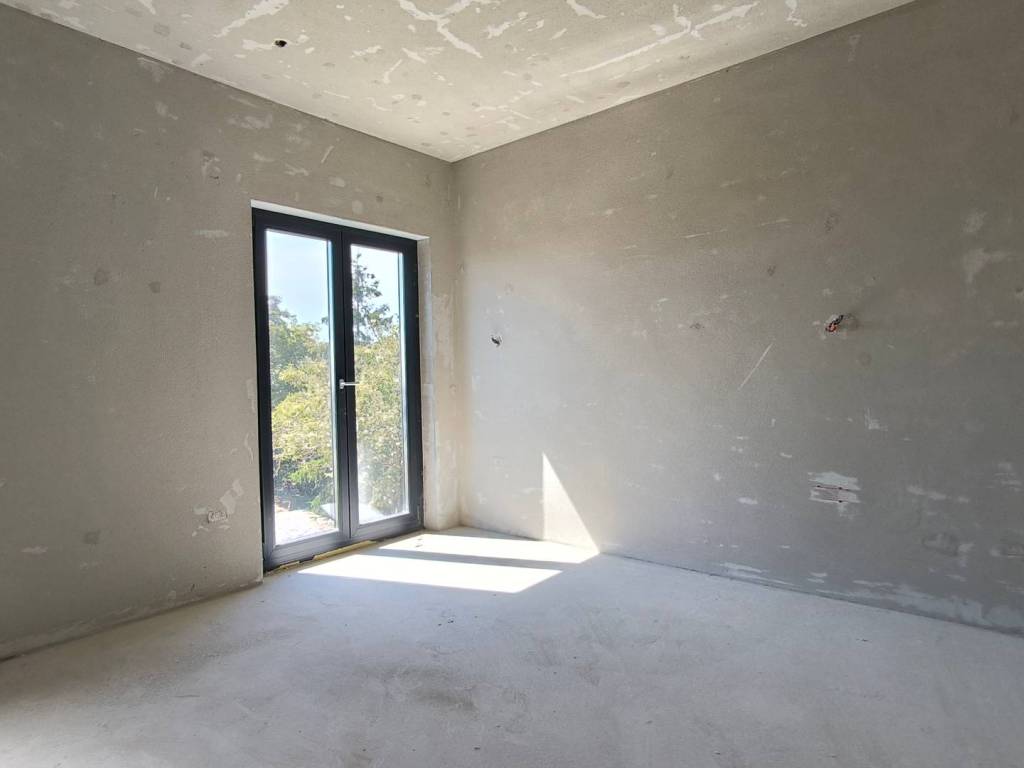 U kući je postavljeno podno grijanje, provedene su instalacije struje i vode i sve prostorije su ožbukane.