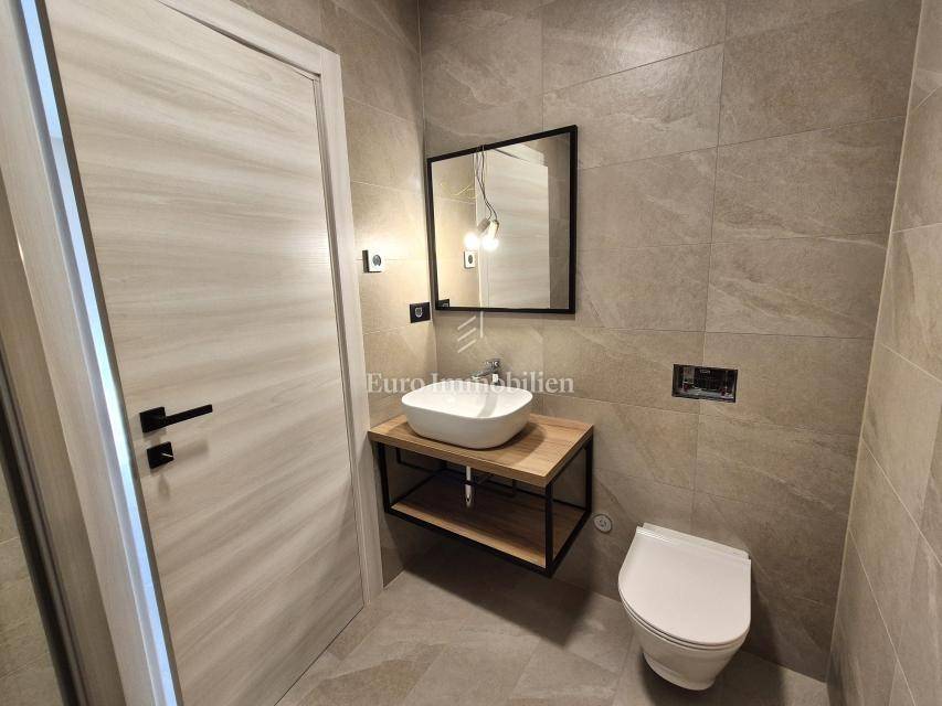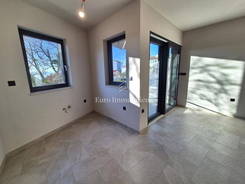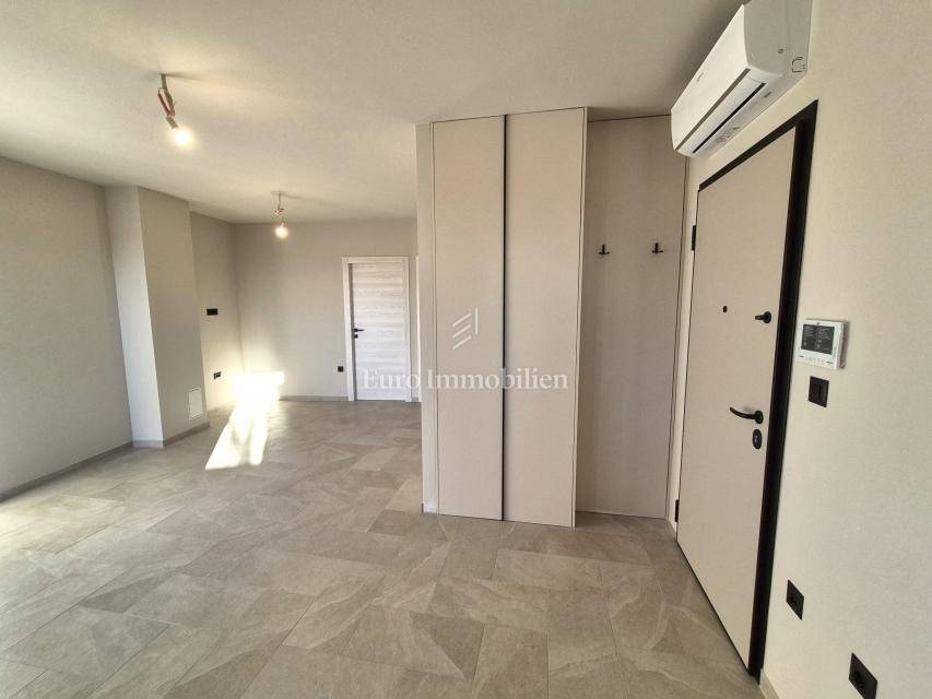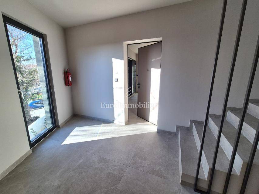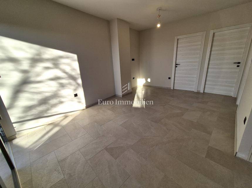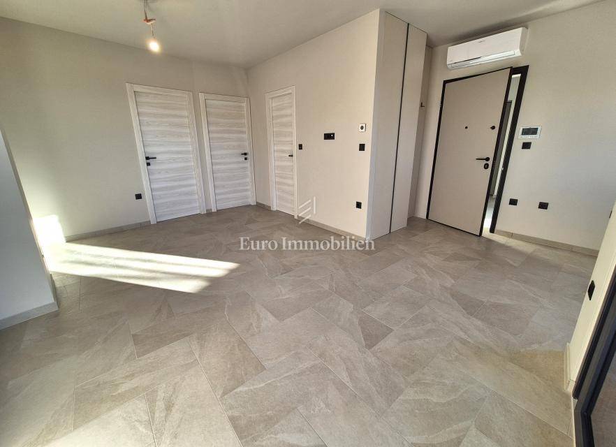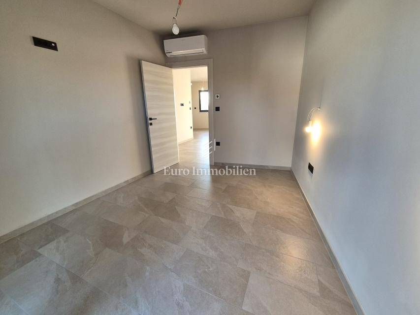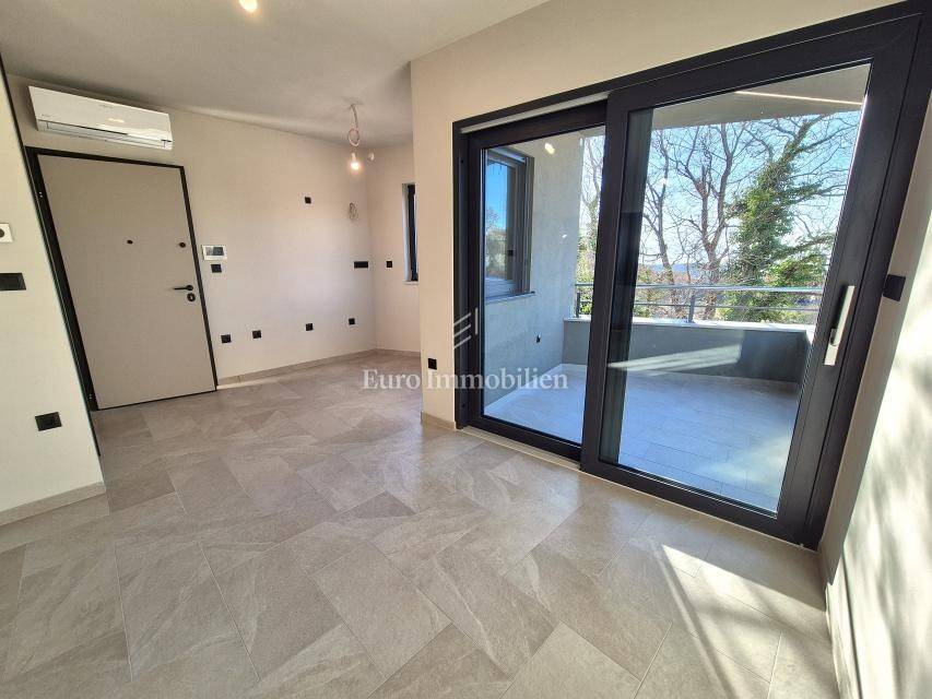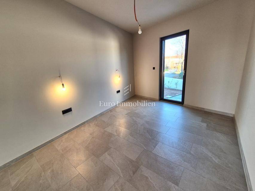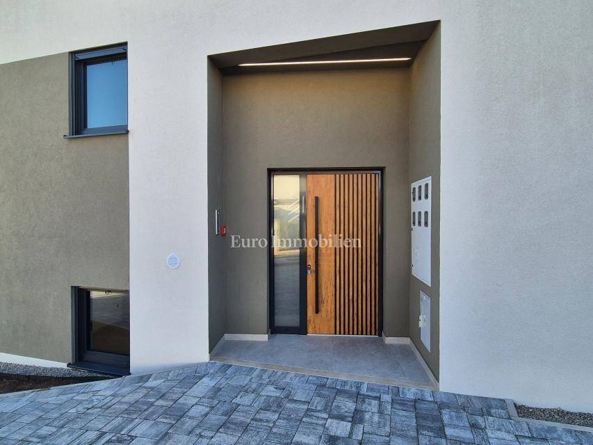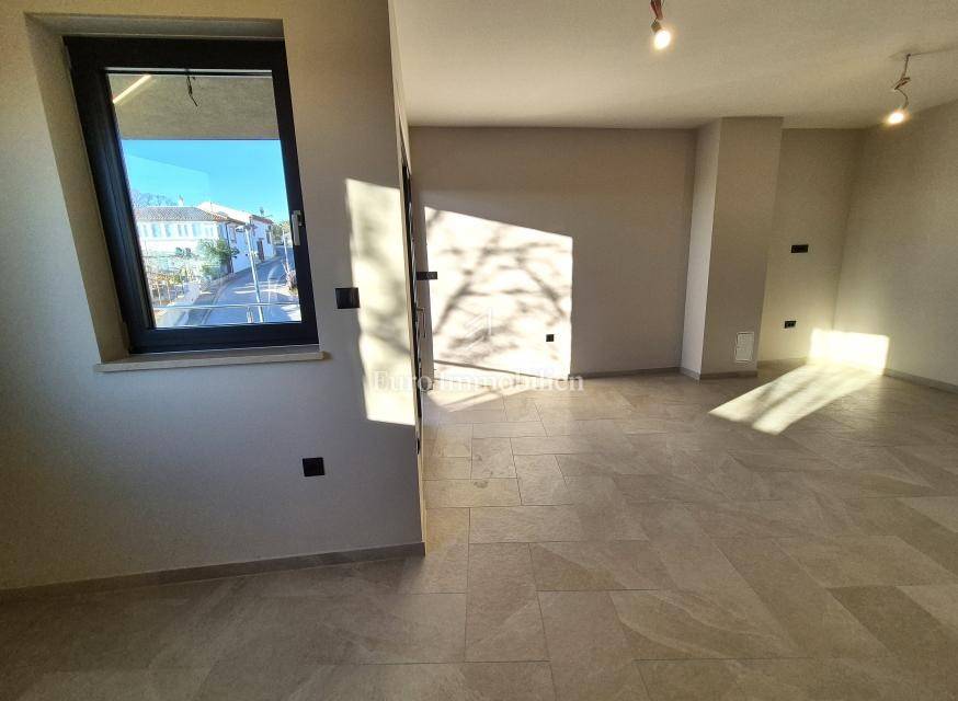 Island of Krk, Omišalj, apartment on the first floor of a new building!!! A new building in Omišalj is for sale with a usable floor area of 49.98 m2 and a balcony of 5.12 m2. The apartment is located on the first floor and consists of an open concept kitchen with dining and living room, two bedrooms and a bathroom. The apartment has a parking space of 13 m2 and a garden of 29 m2 located next to the parking lot. Next to the parking space there is a preparation for an electric vehicle charger and a water outlet. The apartment is equipped with security doors, quality ceramics and sanitary ware, PVC joinery with ALU shutters, underfloor heating in all rooms via a central Vaillant boiler, and air conditioning in all rooms with Viessmann air conditioners. The property is subject to VAT, the buyer is exempt from paying real estate tax, and it is suitable for personal use or tourist rental.