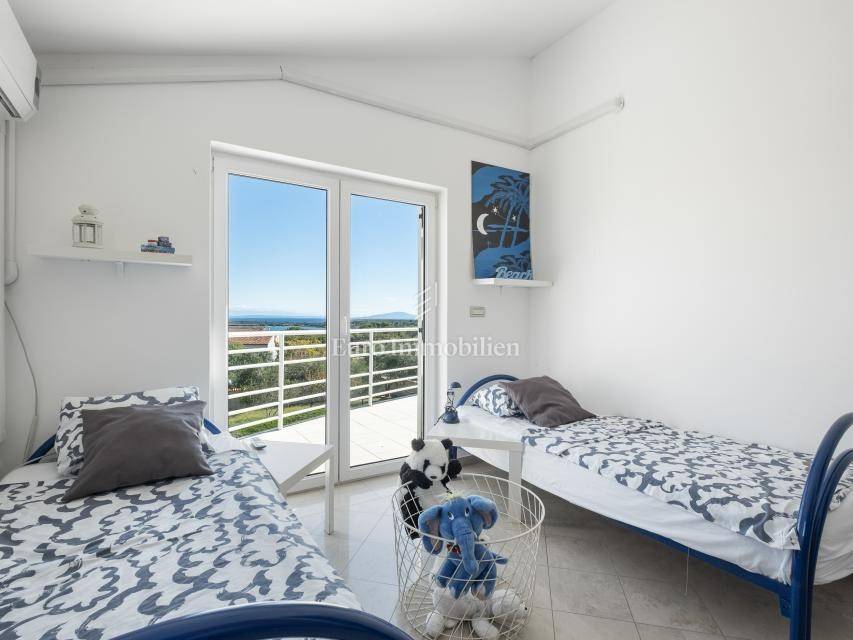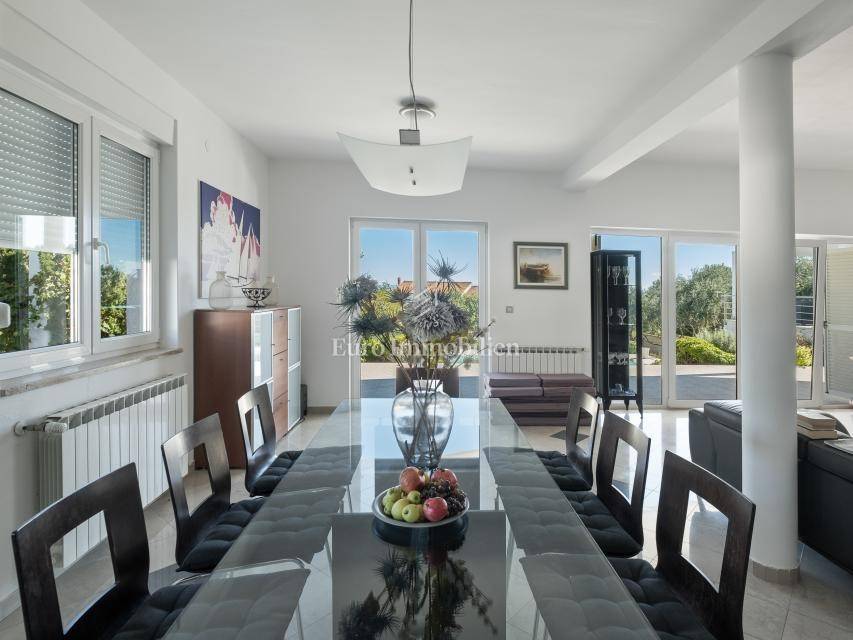 With a total living area of 241 m², the villa features six bedrooms, a home office, a living room, three bathrooms, a kitchen, and a dining area. It is equipped with central heating, air conditioning throughout the house, and optical fiber internet. Built using the highest-quality materials, the villa offers premium design and carefully selected details that radiate elegance.