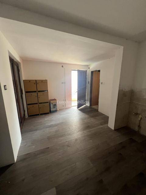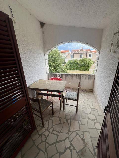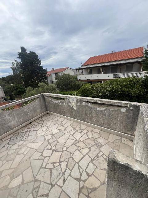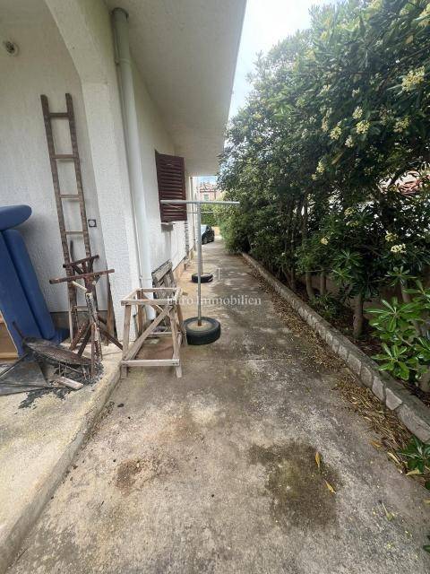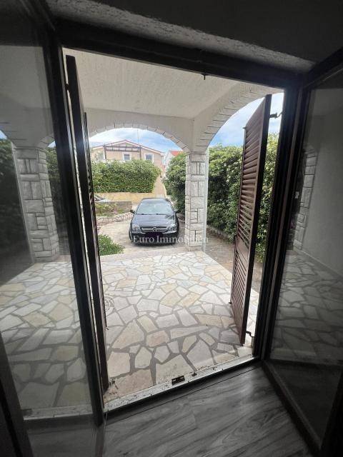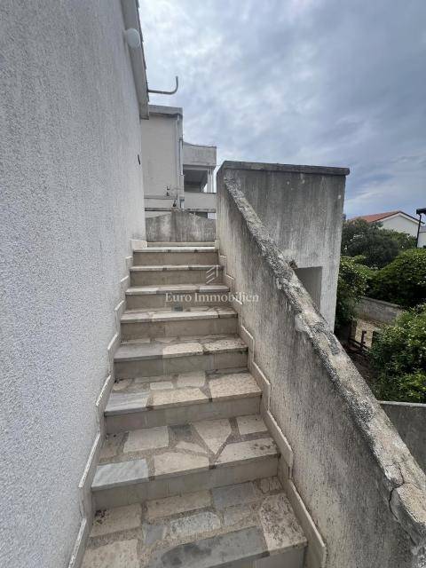 Half a house with three separate apartments for sale, 140 m from the beach, in Povljana on the island of Pag. The property extends over the ground floor and first floor. On the ground floor is apartment APP1, which consists of two bedrooms, living room, kitchen, dining room, bathroom and terrace. There are two apartments on the first floor: APP2 - studio apartment with bathroom (roh-bau) and terrace and APP3 - partially furnished studio apartment with terrace. Parking space on the street next to the entrance of the house (public parking) and one in the yard of the building.
