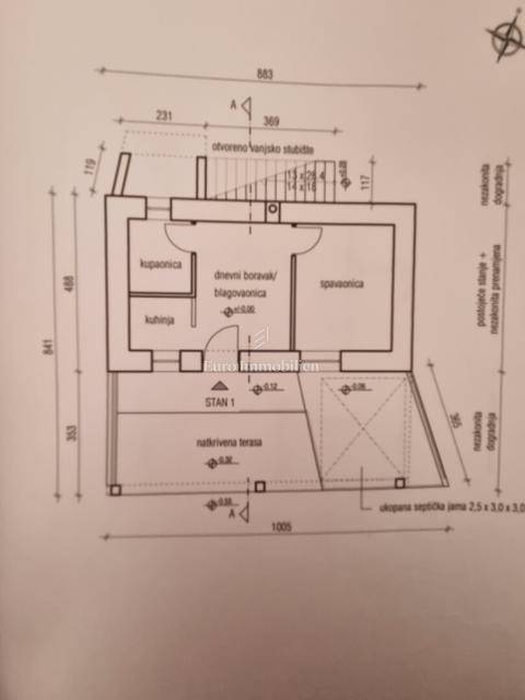 A detached house located in a quiet area near Višnjan, with a living area of 214 m². The total plot size is 320 m², of which 236 m² is yard space. The house is spread over three levels: ground floor, first floor, and high attic.