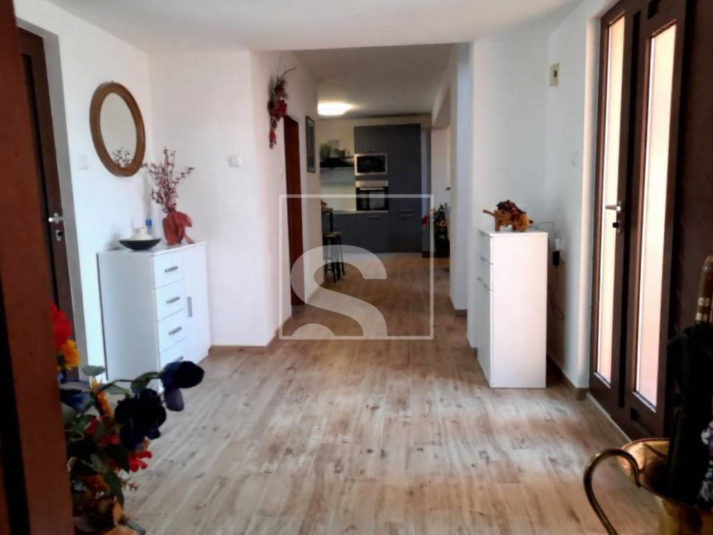 A special feature is the garage of approximately 15 m², which includes an atomic shelter measuring 3x3x3 meters with air ventilation. The property was last renovated in 2021.