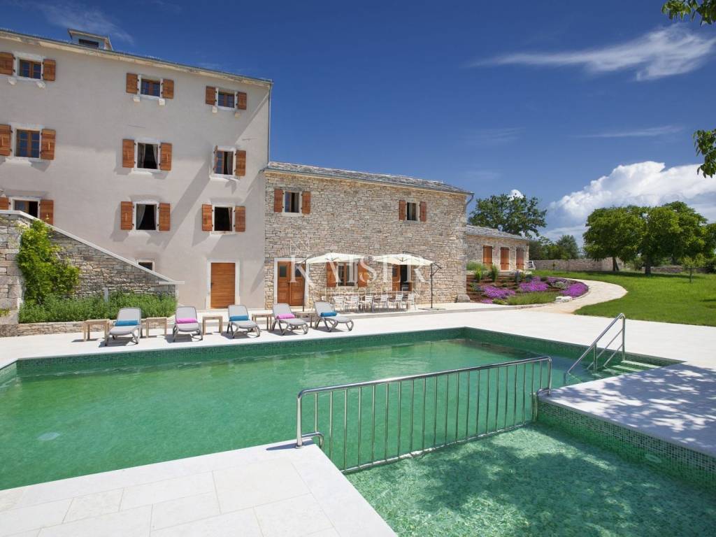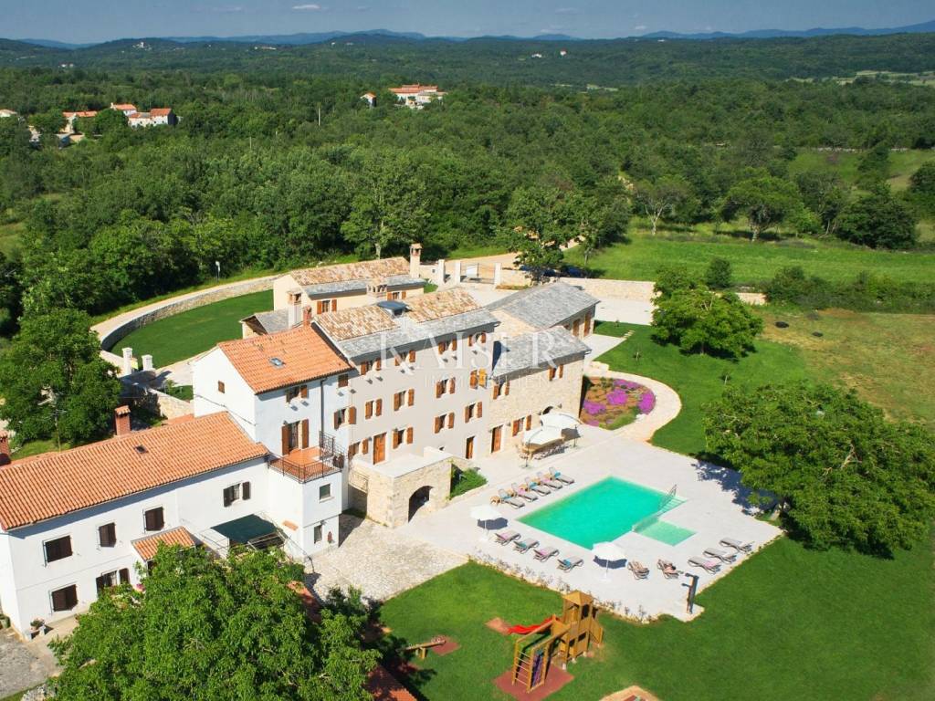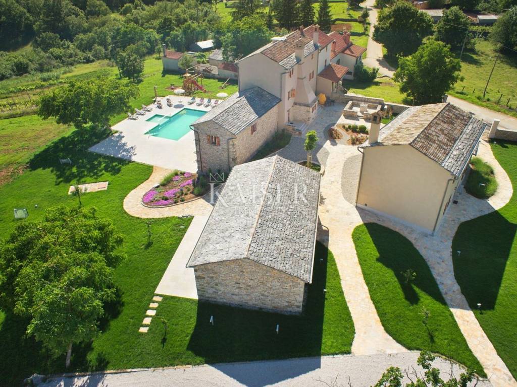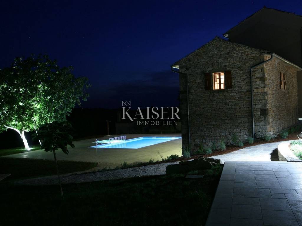 In an exceptionally quiet and discreet location near Grožnjan, there is a unique luxury estate that offers complete privacy, peace and an authentic Istrian atmosphere. Surrounded by untouched nature, where only birdsong and the sound of the wind through the trees can be heard, this estate is a perfect combination of traditional Istrian architecture and top-notch modern equipment.