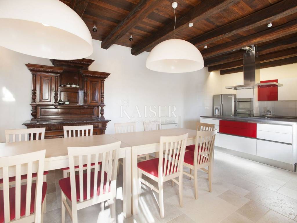 In the center of the large villa there is an imposing indigenous Istrian fogoler – a fireplace, renovated with the original firebox, which gives the space a special character and warmth.