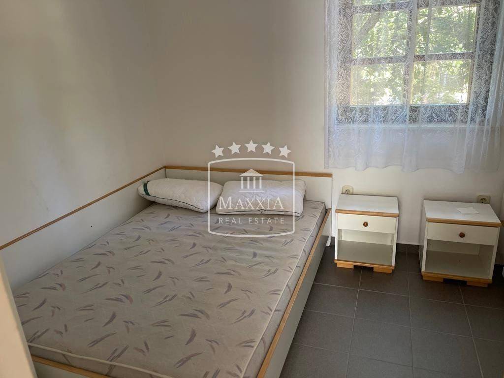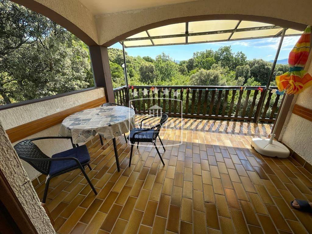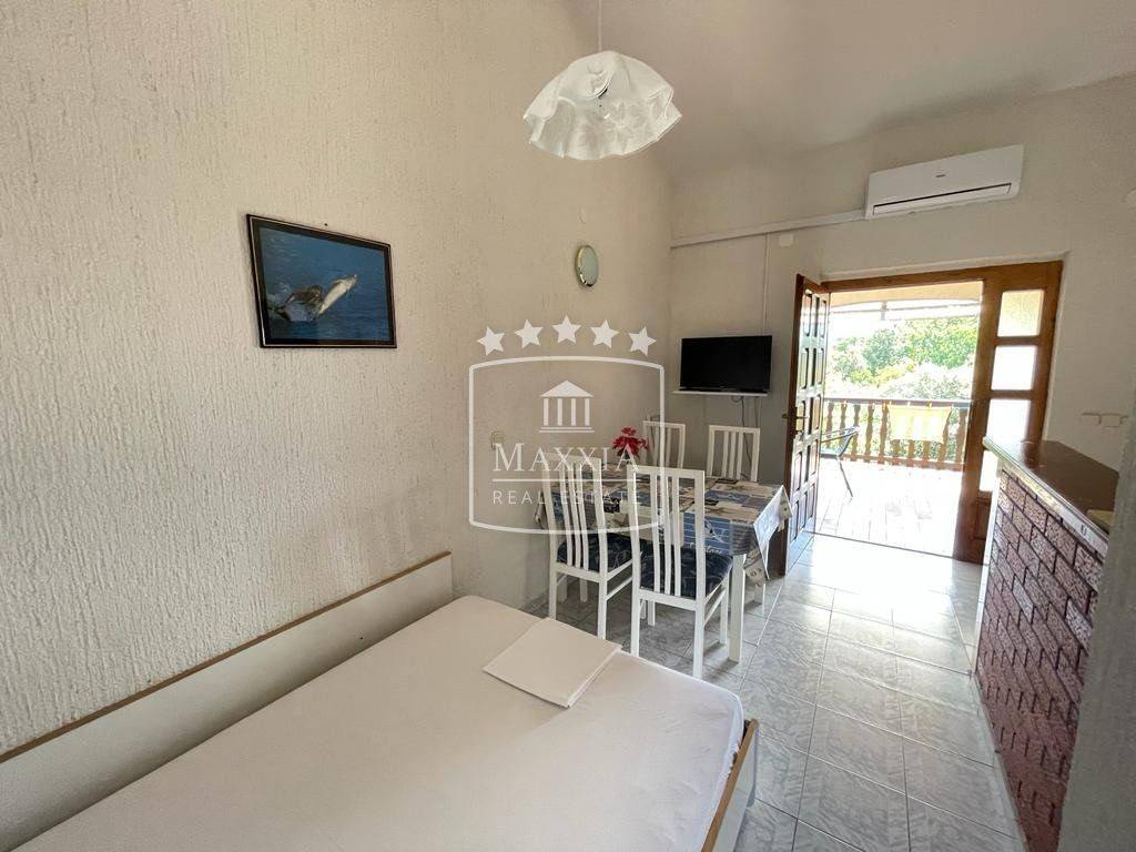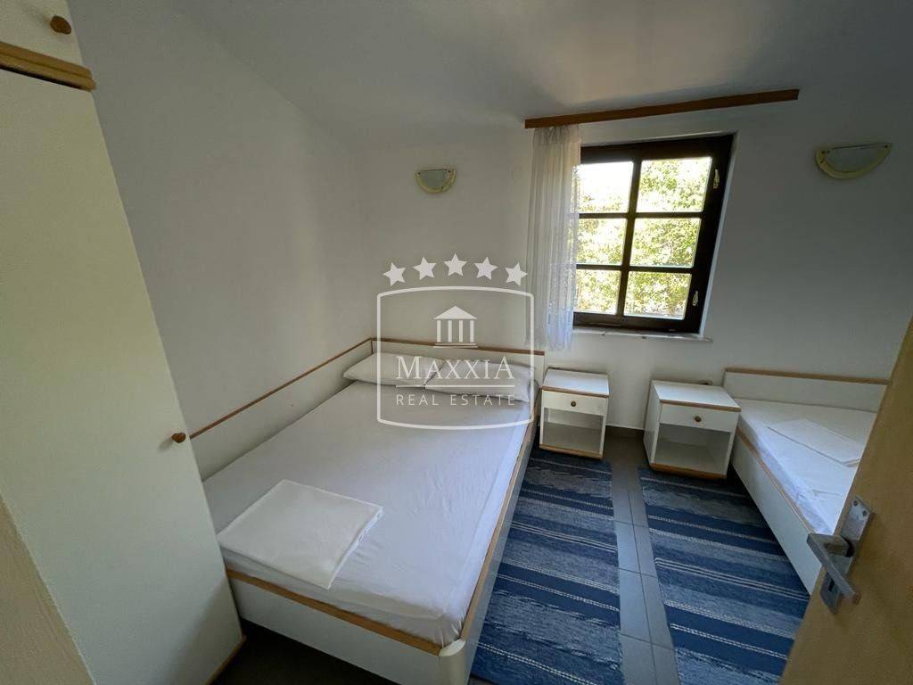 The house consists of a ground floor, first and a second floor with covered terraces from which extends a view of the sea and the surroundings. Of the 8 apartment units, 3 are two-bedroom and 5 are one-bedroom apartments. The building is air-conditioned and is sold fully furnished. New PVC windows installed in all apartments. Garage and a storage room are located on the ground floor. 9 uncovered parking spaces, as well as a brick fireplace in the yard. The house was built in 1996 and has been used for many years as a well-established tourist activity. Peaceful surroundings in the shadow of Dalmatian pines. The distance to the landscaped beach is approximately 70m.