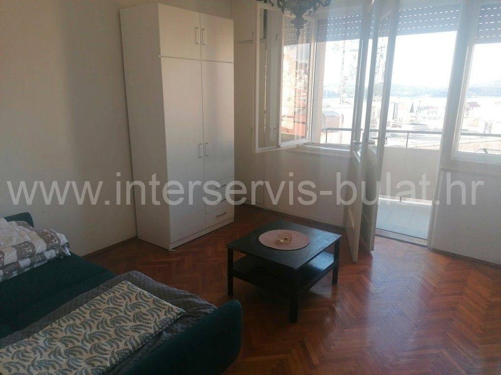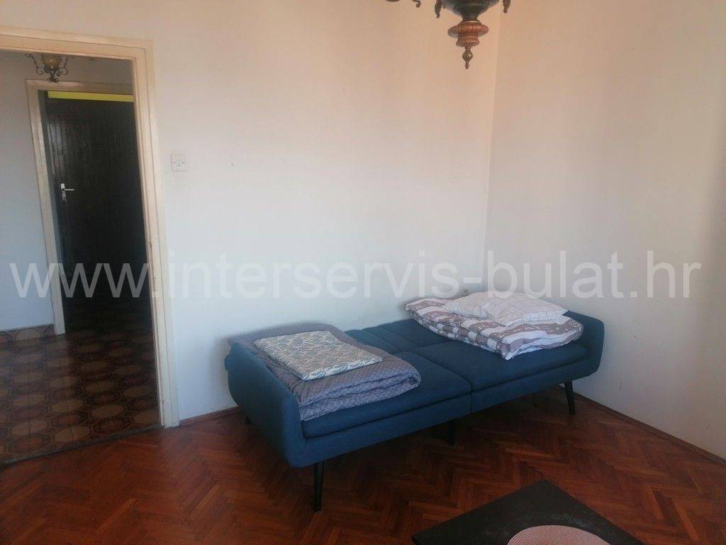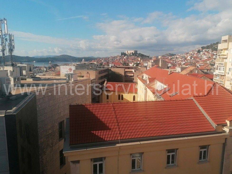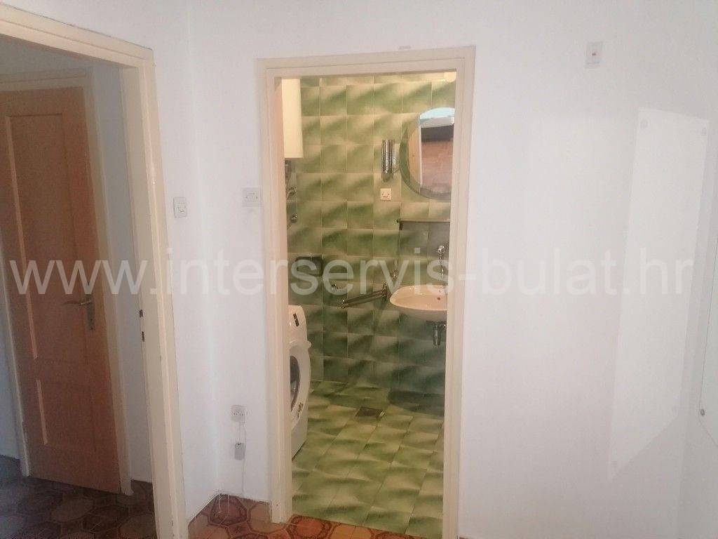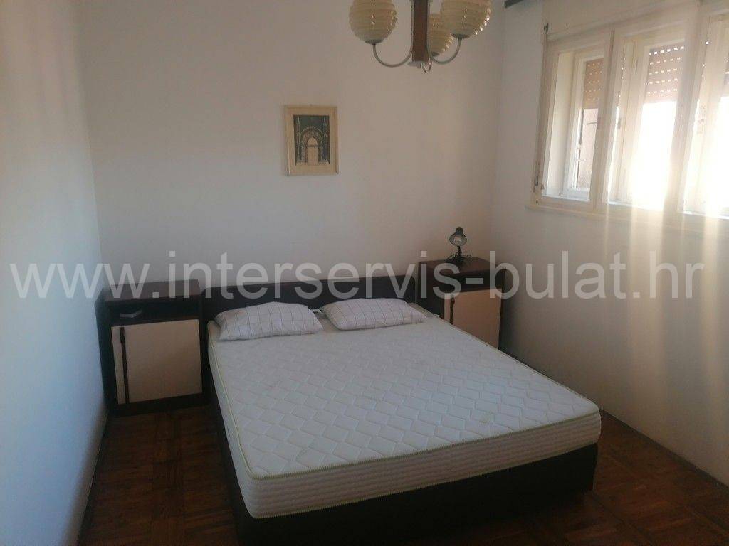 In a beautiful location in Šibenik, in the wider city center, there is an older building with 6 floors. The building has an elevator up to the fifth floor. The apartmentfor rent is on the top, sixth floor and has 60 sqm of living space. It consists of a hallway, bathroom, two bedrooms, one of which has access to a balcony with view of part of the city and the sea, and a kitchen with dining room and living room. The apartment is neat and well-maintained and ready to move in immediately. Its location, namely the proximity of service and public activities such as shops, bakeries, hospitals, banks, post offices and the like, makes it desirable.
