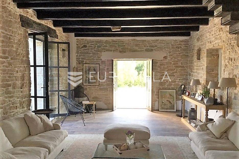 U srcu čarobne istarske unutrašnjosti, u neposrednoj blizini Grožnjan, smješteno je jedinstveno imanje ukupne površine 13.497 m² koje predstavlja savršeni spoj autentične baštine i suvremenog luksuza.Imanje se sastoji od tri zasebna objekta: impresivne glavne kamene kuće, manje kamene lounge kuće te moderne novogradnje vrhunskog arhitektonskog dizajna. Izvorne kamene građevine, stare preko 250 godina, u potpunosti su obnovljene uz maksimalno poštivanje tradicije, čime je očuvan njihov autentični izgled i prepoznatljiva vizura istarskih stancija.Za potrebe suvremenog načina života osmišljen je moderan objekt koji uključuje wellness zonu, mediateku, lounge prostor te impresivan bazen dužine 18 metara sa sunčalištem. Uz bazen je predviđen i dodatni objekt s ljetnom kuhinjom i vinskim podrumom. Moderni dio imanja trenutno je u fazi rekonstrukcije, dok je bazen i okolne sadržaje potrebno dovršiti, što budućem vlasniku ostavlja mogućnost finalne personalizacije prema vlastitim željama.Nekretnina se nalazi na izuzetno mirnoj i privatnoj lokaciji, okružena brežuljcima, šumama i poljima, svega 3 km od Grožnjan, 6 km od Buje, 7 km od slovenske granice te 15 km od mora. Ova mikrolokacija pruža poseban doživljaj Istre kroz sva četiri godišnja doba – od toplih i sunčanih ljeta do mirnih, bajkovitih zima.Ova ekskluzivna nekretnina idealna je za one koji traže potpunu privatnost, luksuz i autentično istarsko okruženje, uz neposrednu blizinu vrhunskih vinarija, maslinara i renomirane gastronomske scene.Uz osobno uživanje, nekretnina predstavlja i izniman investicijski potencijal, s obzirom na veliku potražnju za luksuznim vilama s bazenom u Istri.Za više informacija i dogovor oko razgledavanja, slobodno nam se obratite.... Više na eurovilla.hr, ID: 165401