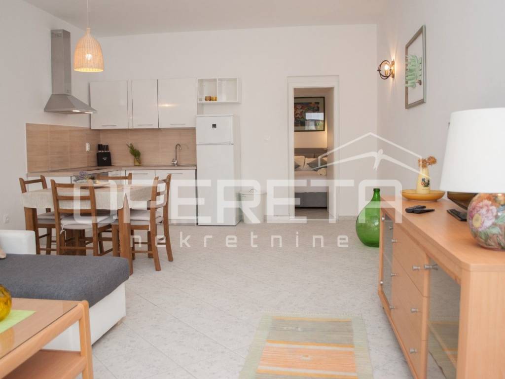 The apartment is located on the ground floor with a view of the little harbor, with a total closed area of 45.71 m, and consists of a living room with dining area and kitchen in an open-concept layout, a bedroom, and a bathroom. In front of the apartment there is a terrace, ideal for relaxing and enjoying the Mediterranean atmosphere. Possibility of parking nearby. The terrace area will be determined later and added to the total square footage. Move-in date: 1 Oct 2026.