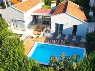 In the front part there is a yard surrounded by greenery that offers privacy where there is a swimming pool with a sunbathing area, and in the back part of the yard there is a summer kitchen with a dining table and a grill for enjoying the summer months.