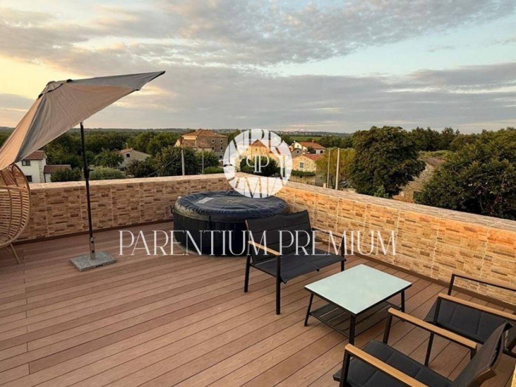 In a peaceful location near Poreč and close to the sea, a fully renovated and modernly furnished Istrian stone terraced house (middle unit) with a total living area of 180 m is for sale. The house was thoroughly renovated in 2025, preserving authentic stone details while incorporating modern features that ensure a high level of comfort.