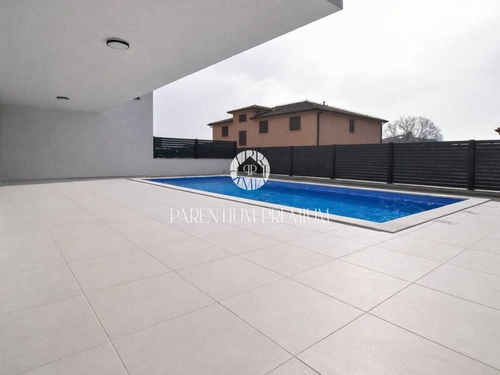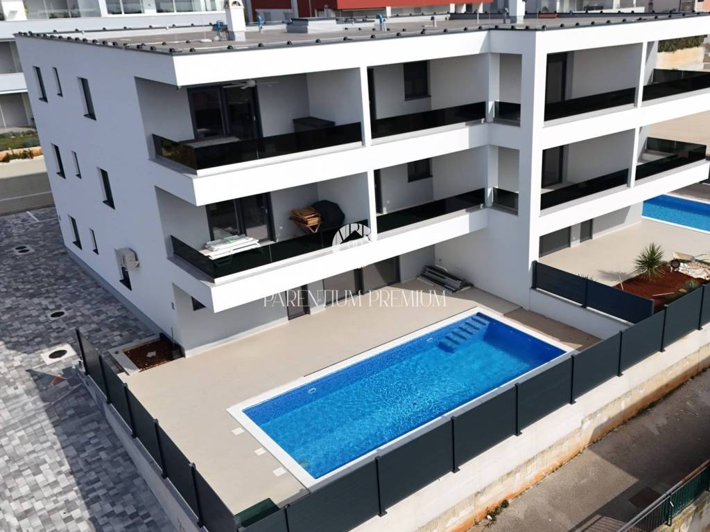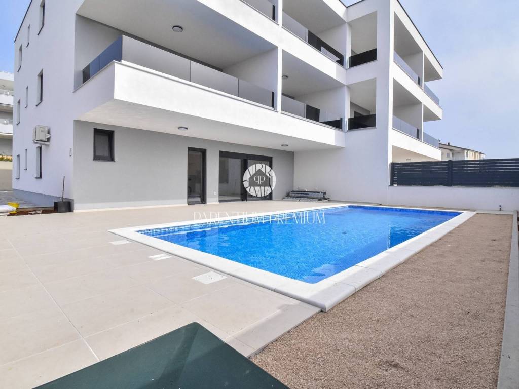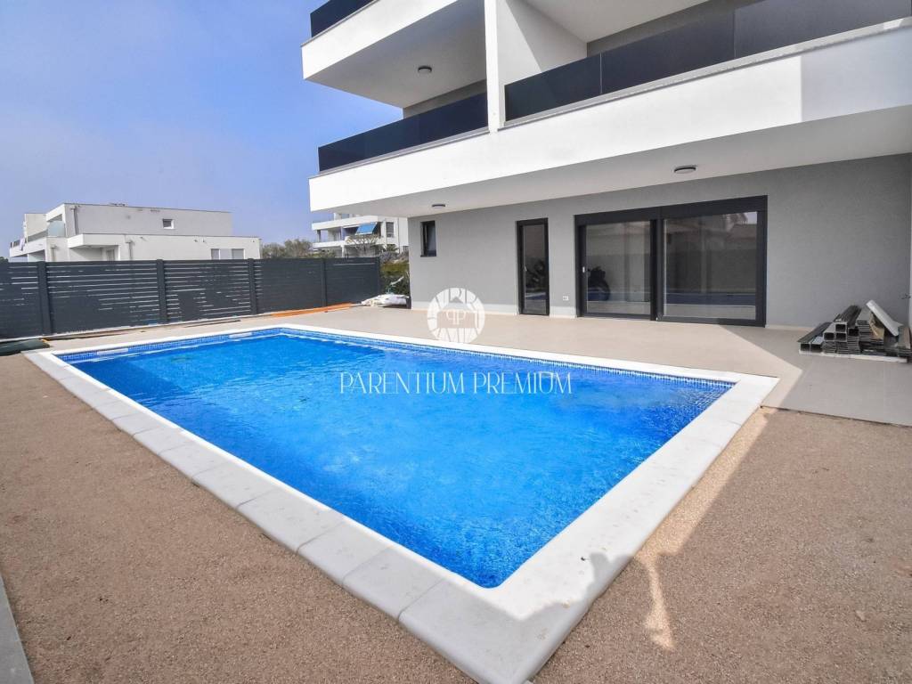 A luxurious apartment with a swimming pool is for sale, located on the ground floor of a modern residential building with a total of 8 apartments, in an exceptionally attractive location in Novigrad. The property is only 700 m from the nearest beaches and marina, and approximately 1000 m from the town center and all amenities.