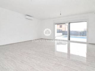 High-quality materials and modern equipment have been used throughout, including premium PVC joinery with aluminum shutters, security and fire-resistant entrance doors, first-class floor coverings, high-quality sanitary ware, and built-in cisterns. The building is equipped with a 10 cm thermal façade insulation. The swimming pool features a skimmer system and is lined with foil.