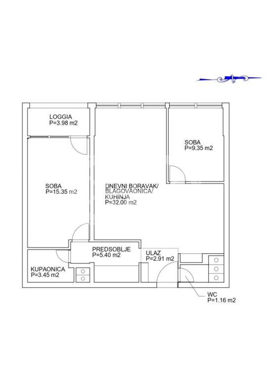 Ukupna površina stana iznosi 73,60 m2, nalazi se na 5. katu, a sastoji se od ulaza, dnevnog boravka s blagovaonicom i kuhinjom, dvije spavaće sobe, predsoblja, kupaonice, wc-a i loggie.