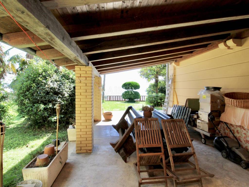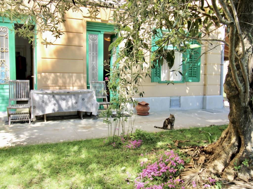 The apartment occupies the entire lowest floor of the villa, where a large roofed terrace also belongs to it on one side.