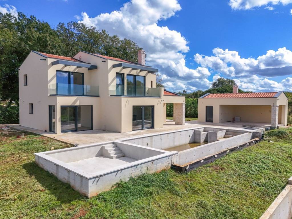 Not far from St. Lovreč, a villa is for sale with a spectacular panoramic view, stretching from the Alps to the iconic church of St. Euphemia in Rovinj. Located on a plot of 1,400 m2, the villa is spread over two floors, with a total net area of 254 m2, surrounded by the untouched nature of Istria, offering the perfect combination of luxury and privacy.
