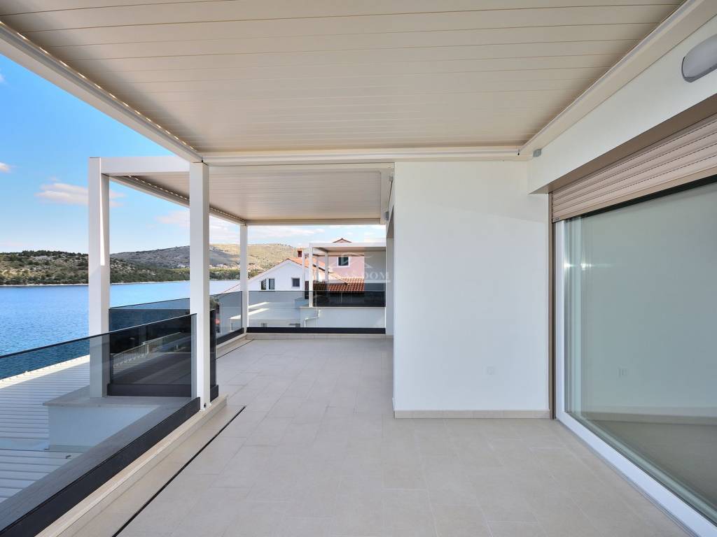 Primošten, Šparadići - exclusive apartments for sale in a small residential building with sea views, first row to the beach. Apartment B4 PENTHOUSE with a living area of 87.67 m2 extends over the entire second floor of the building and consists of entrance, hallway, three bedrooms, bathroom, kitchen with dining area and living room, as well as a terrace of 30.56 m2. The apartment includes one parking space of 12.50 m2. PRICE: €665,000.00