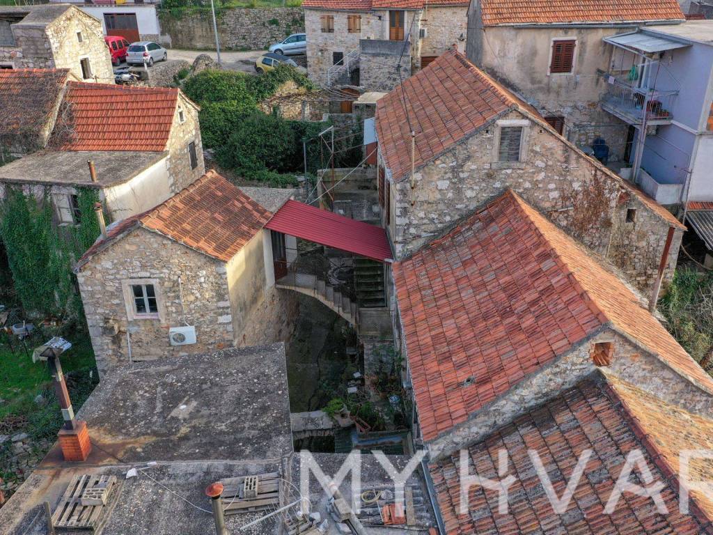 Located in the charming village of Vrbanj, this historic stone house offers a blend of traditional charm and modern potential. The property consists of two connected objects, each with its own separate entrance for the first floor and a tavern area. The main living space spans approximately 75 m, while the taverns also offer about 75 m of additional space.