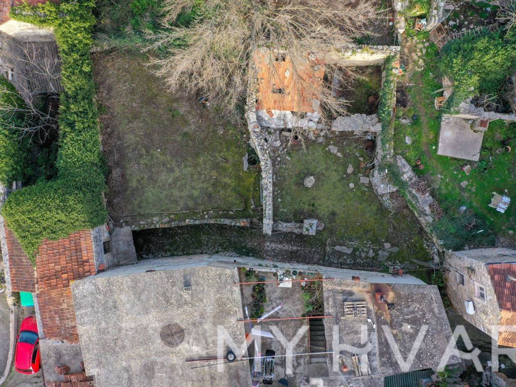 The first floor of one of the objects is connected to a second house via a charming little bridge over an alley. This second house offers around 18 m of space on the first floor, complete with air conditioning, a tavern, and an old water tank of about 16 m. Moving to the garden, which is just 10 meters away, you'll find a couple of ruins, each around 8 m, that can be renovated to provide extra living space. The garden itself is spacious, covering approximately 250 m, offering ample room for building new structures or renovating the existing ruins.