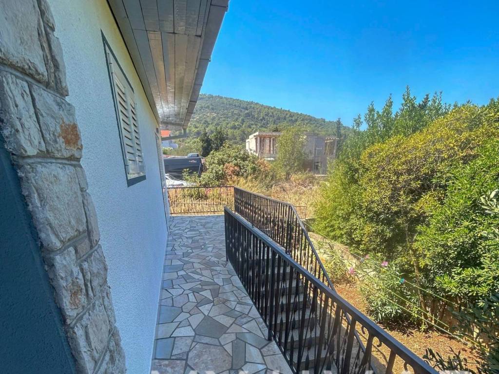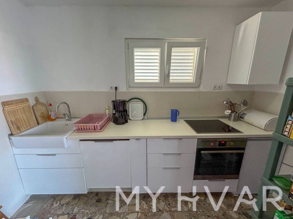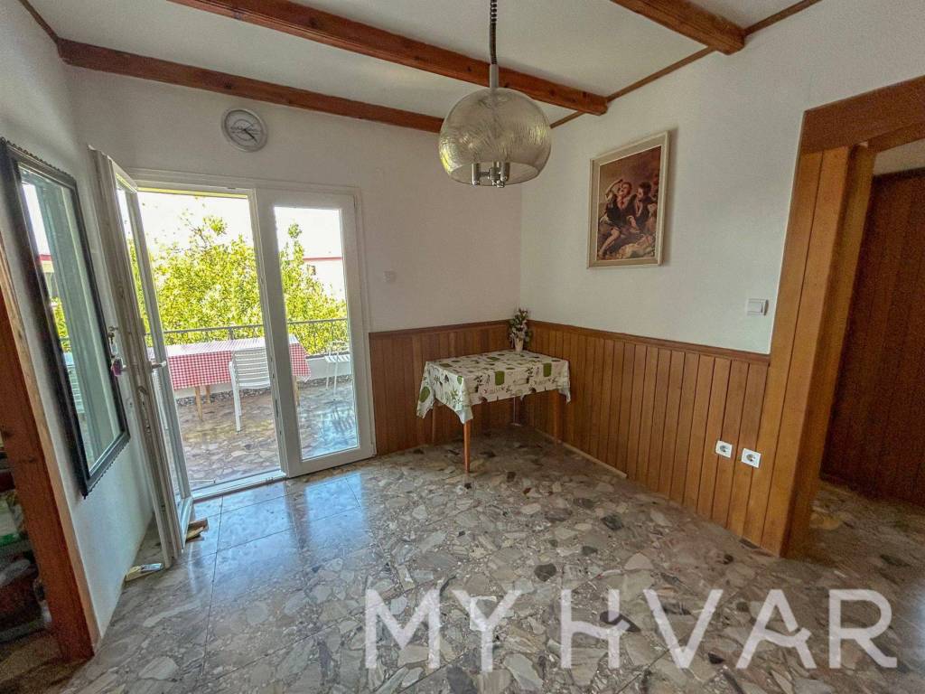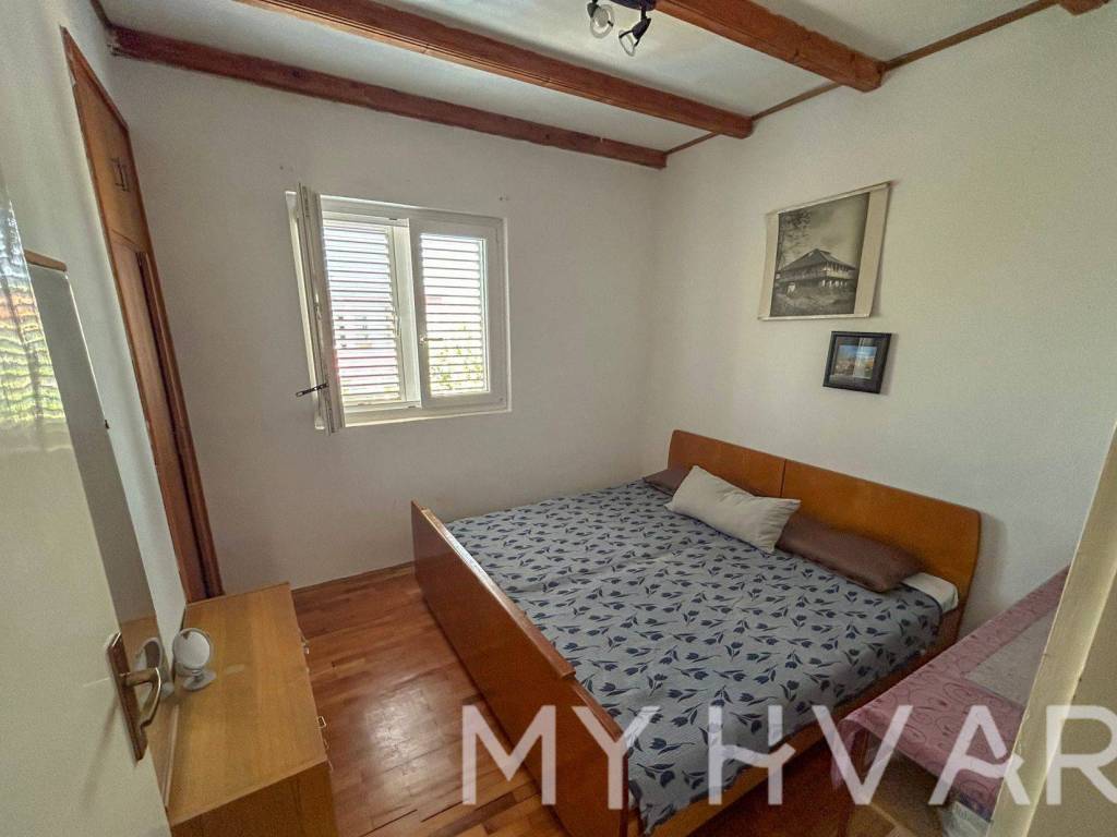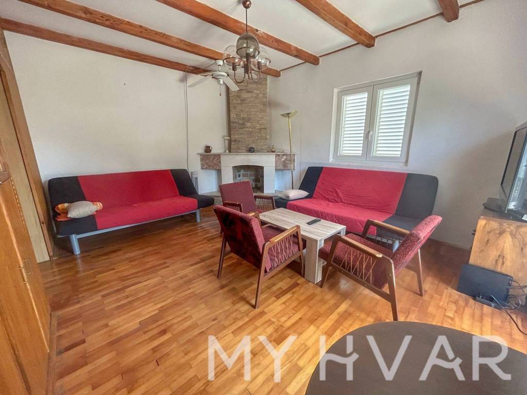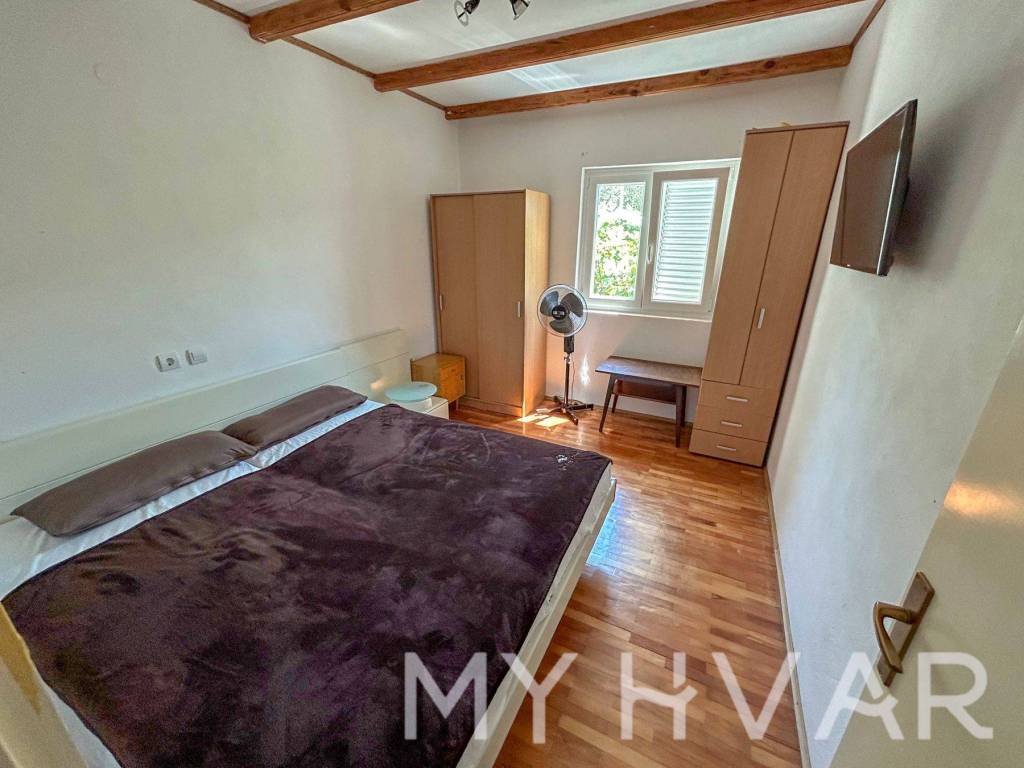 Discover this serene single-standing house in the peaceful part of Stari Grad, ideally situated just 350 meters from the sea and 600 meters from the town center. The house offers 125 square meters of living space, with a charming yard and garden spanning 312 square meters. Each floor hosts a well-maintained, move-in-ready apartment, perfect for family living or rental opportunities. The garden, framed by oleander bushes, provides added privacy and a tranquil atmosphere. With two parking spaces in front of the house, convenience is guaranteed.