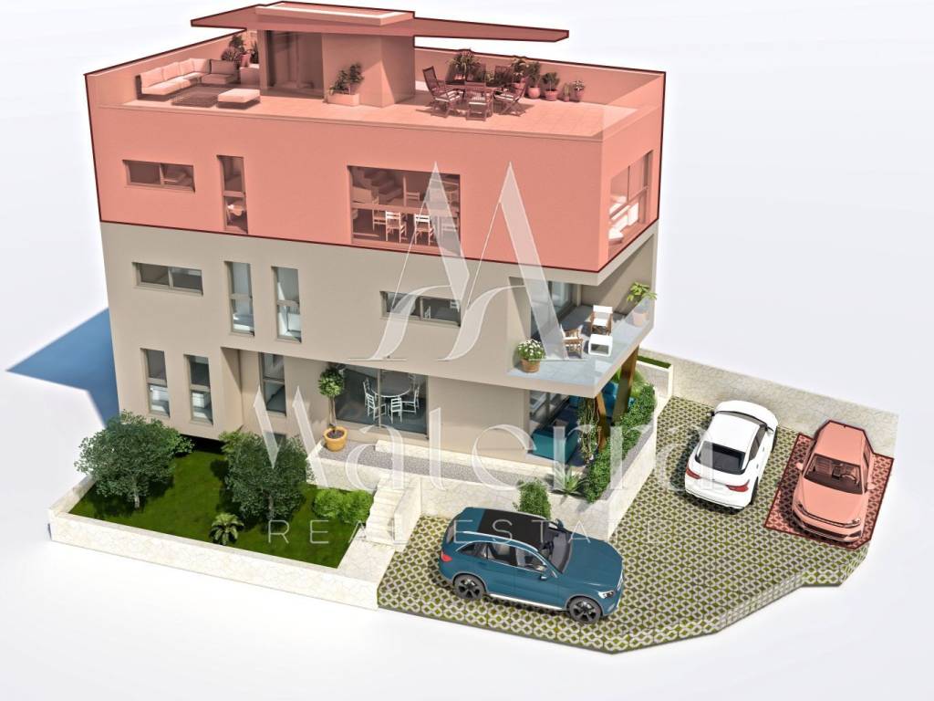 Living room and dining area – 28.01 m² Kitchen – 8.40 m² Bathroom – 4.57 m² Bedroom 1 – 10.18 m² Bedroom 2 – 10.76 m² Rooftop terrace – 53.83 m² Covered terrace – 7.50 m²