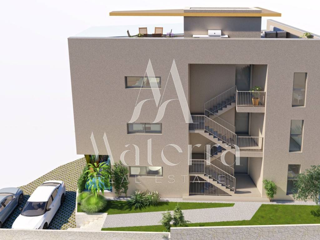 A luxury apartment S3 is for sale, located on the second floor of a modern new building in an attractive and quiet location in Šibenik, just 200 m from the beach and 700 m from the town center.