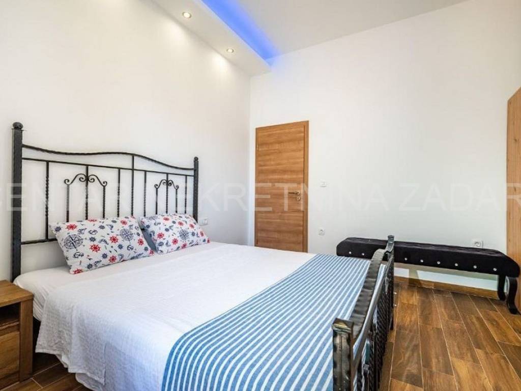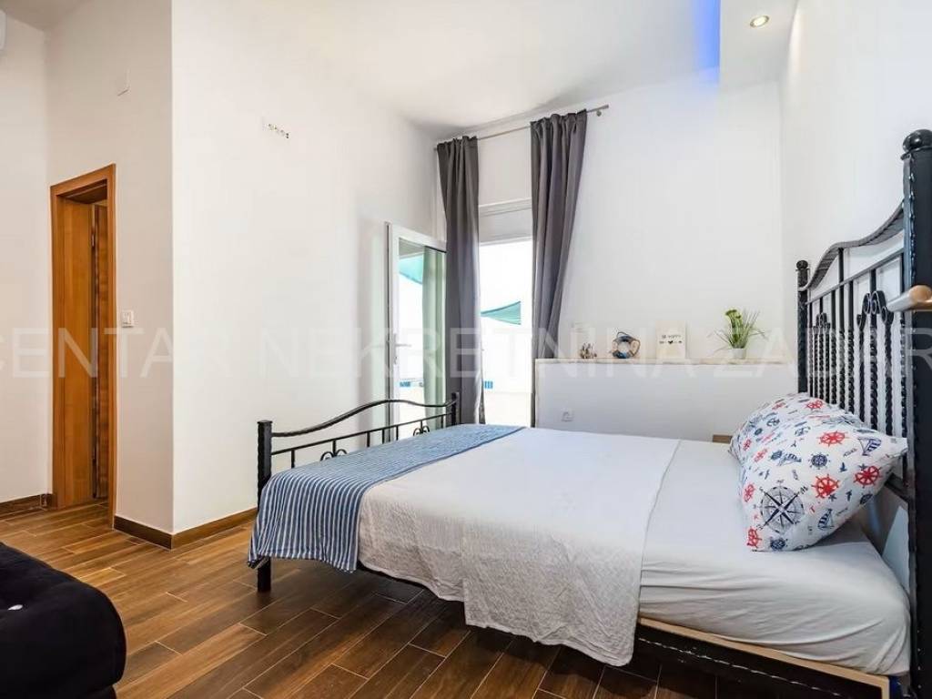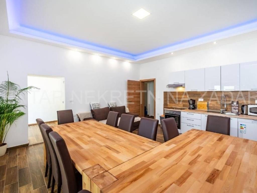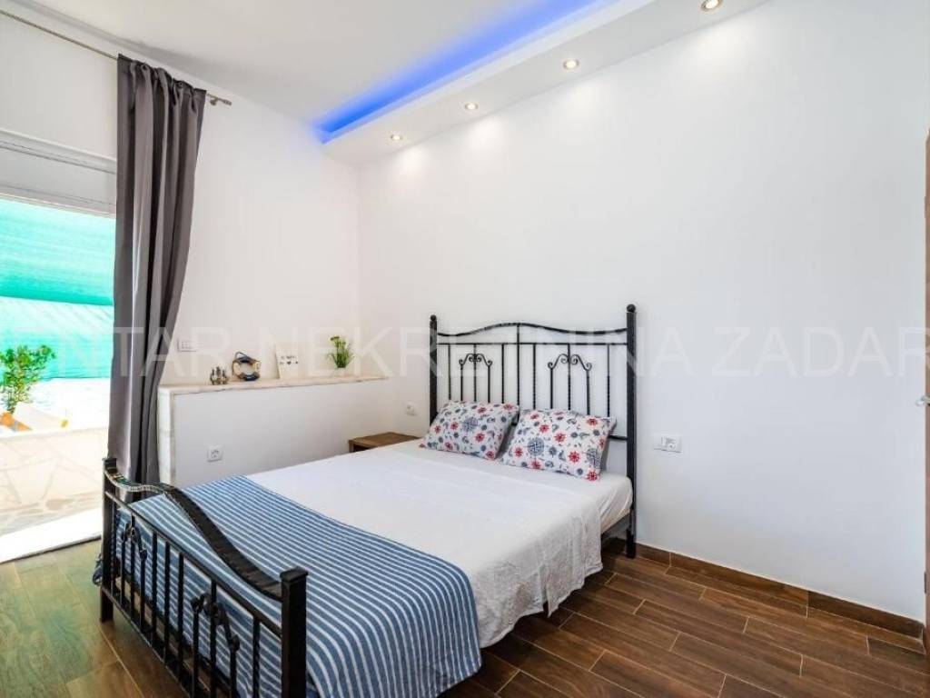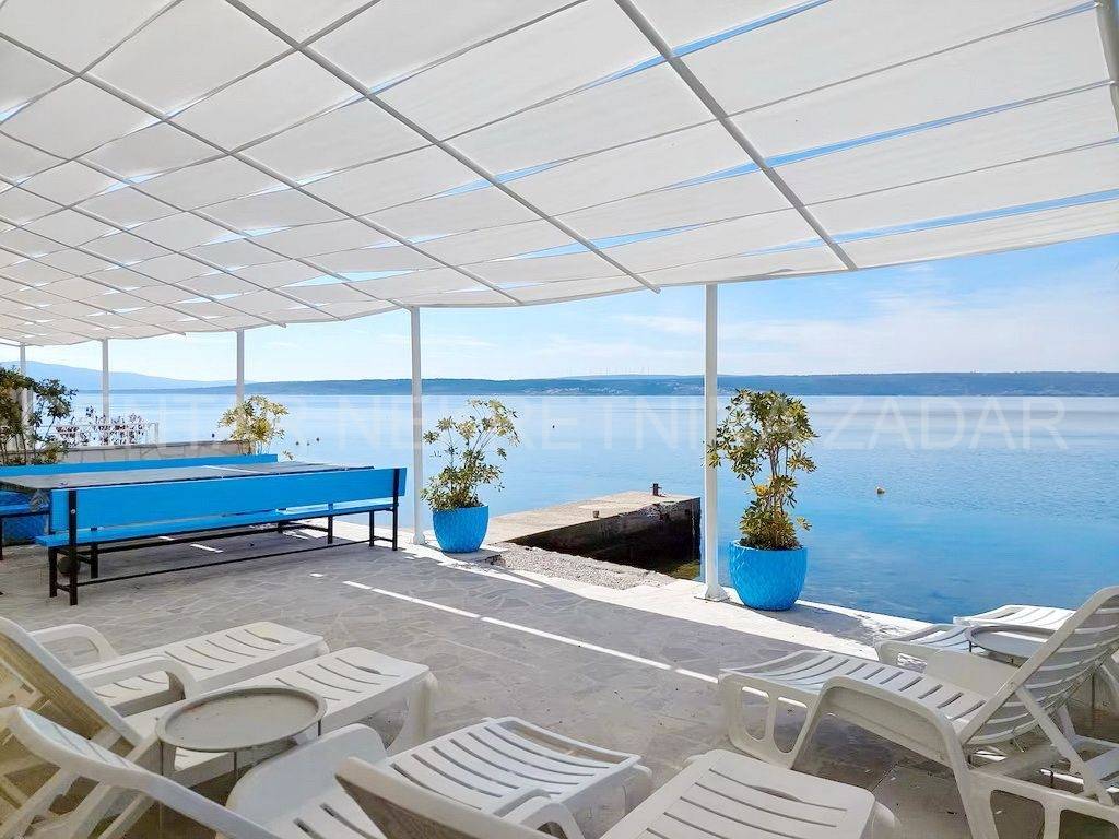 Maslenica first row to the sea A spacious six-room apartment for sale in Maslenica, located on the ground floor of a two-story building on the coast. Its area is 130 m and consists of a kitchen with a dining room and living room, six large bedrooms, a hallway and three bathrooms (two of which are in the rooms). It has access to a 60 m terrace covered with a pergola, from which the sea is just a few steps away. The apartment was renovated in 2020 and is regularly maintained. An additional advantage is the separate entrance and large terrace, as well as a small beach in front of the building, so the occupancy is over 150 nights a year. The location of the apartment is excellent the center of town with all the amenities necessary for a pleasant vacation, but also everyday life. For a viewing, please call +385 99 325 2763.