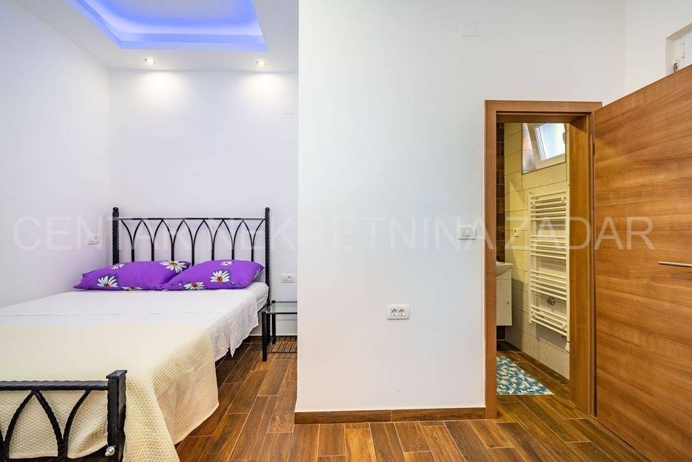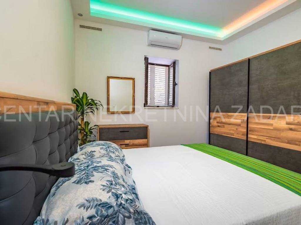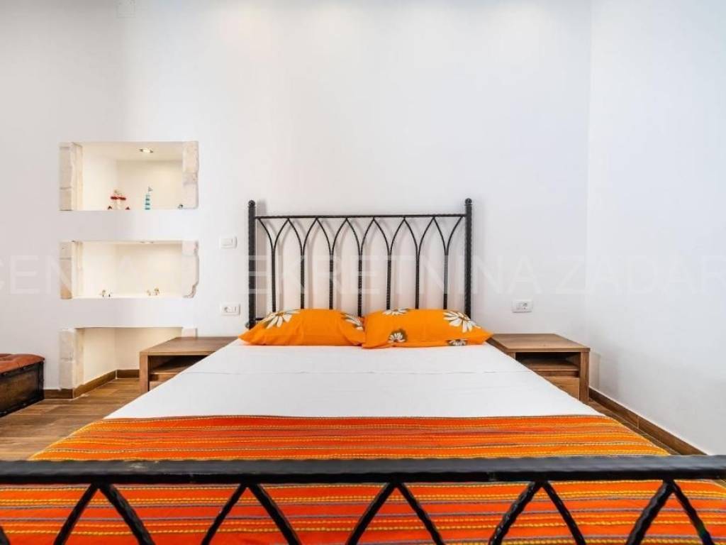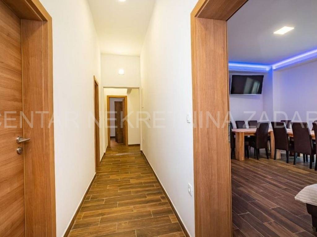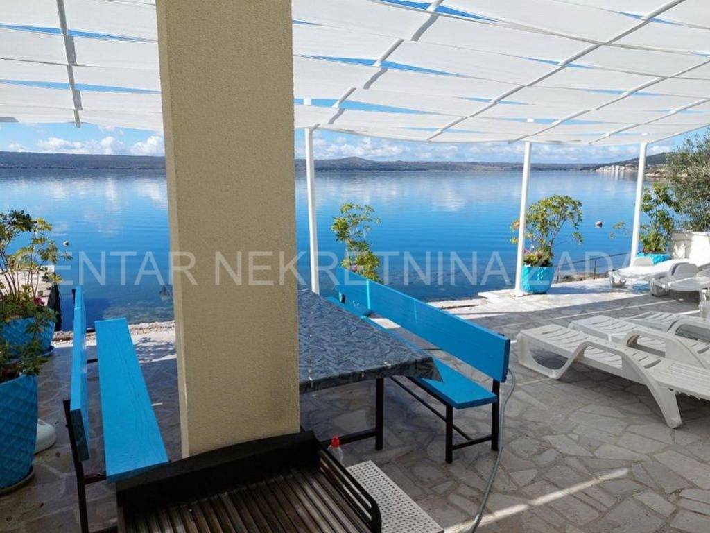 Maslenica first row to the sea A spacious six-room apartment for sale in Maslenica, located on the ground floor of a two-story building on the coast. Its area is 130 m and consists of a kitchen with a dining room and living room, six large bedrooms, a hallway and three bathrooms (two of which are in the rooms). It has access to a 60 m terrace covered with a pergola, from which the sea is just a few steps away. The apartment was renovated in 2020 and is regularly maintained. An additional advantage is the separate entrance and large terrace, as well as a small beach in front of the building, so the occupancy is over 150 nights a year. The location of the apartment is excellent the center of town with all the amenities necessary for a pleasant vacation, but also everyday life. For a viewing, please call +385 99 325 2763.