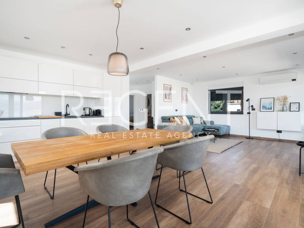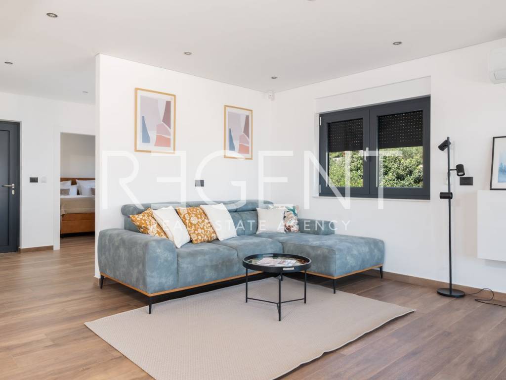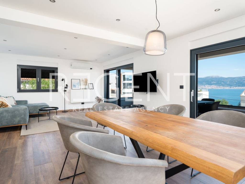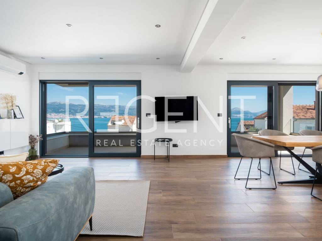 In the peaceful and attractive settlement of Slatine, near the city of Trogir, a fully furnished apartment is for sale, located on the first floor of a small residential building of newer construction with a total of three residential units. The property is located in an exceptional location, just a few steps from the sea and the beach, in the immediate vicinity of all the amenities needed for a pleasant stay and everyday life. The apartment has a closed living area of 78.22 m² and is functionally arranged. It consists of an entrance hall, two bedrooms, one of which has access to its own terrace of 4.29 m², two bathrooms, a kitchen with a dining area and a spacious living room with access to a terrace of 15.60 m² which offers a sea view. The property is sold fully furnished and equipped and is ready for move-in without additional investments. Additional value to the property is given by a garage parking space with a storage room with a total area of 29.54 m² and an outdoor, uncovered and fenced parking space of 10.68 m². The small building with a total of three residential units ensures peace, privacy and a pleasant environment. This property represents an excellent opportunity to purchase a quality apartment in a sought-after location in the immediate vicinity of Trogir, suitable for both private use and tourist rental. For additional information and arrangements for viewing, we are at your disposal.