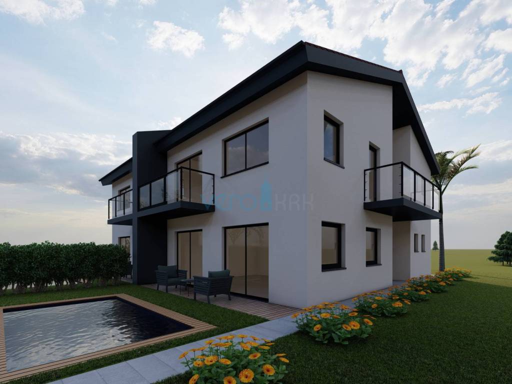 Krk Island, Soline Bay, new construction, semi-detached house with pool, view, for sale