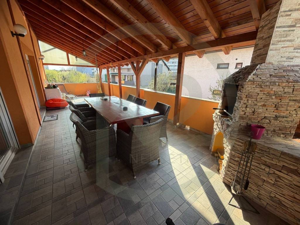 Stan se sastoji od ulaznog hodnika, prostranog dnevnog boravka sa kuhinjom i blagovaonicom te izlazom na veliku natkrivenu terasu površine 36 m2 na kojoj se nalazi stol za 8 osoba te zidani kamin, veće spavaće sobe sa walk-in garderobom te izlaznom na balkon, manje spavaće sobe koja također ima izlaz na balkon i kupaonice sa WC-om.