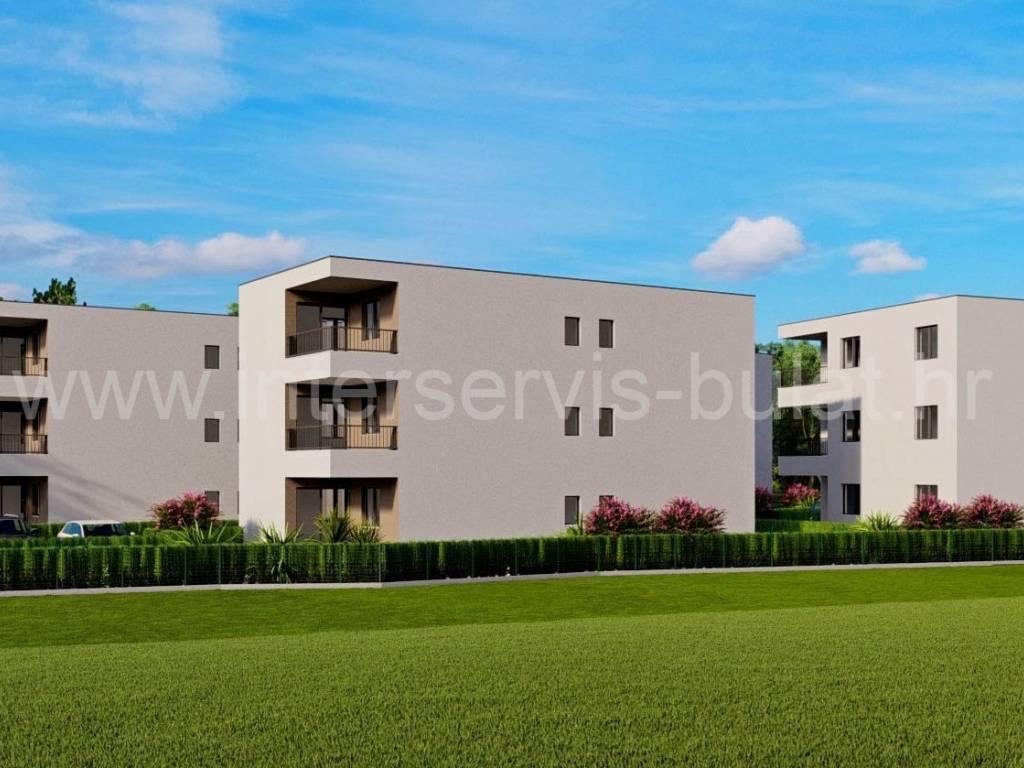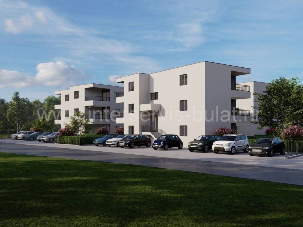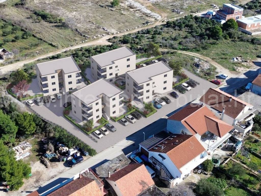 .::: Apartment in a new building in Ražine :::. Four residential buildings, each with six apartments, are being built in the Donje Ražine settlement near Šibenik. The apartment in question is located on the groundfloor of building C. It has 52,99sqm of living space and one parking space.The apartment consists of a hallway, bathroom, bedroom and kitchen with dining room and living room with access to a covered terrace and a yard of 150 sqm. The buildings are planned to have a facade with stone wool, equipped with PVC joinery with electric shutters, quality coverings and floors, underfloor heating in bathrooms and air conditioning. Šibenik is about 2km away, and the beach in Brodarica is about 2.2km away. The planned completion of construction is the end of 2027. Tour of the property is available by prior arrangement and appointment booking (two days in advance). Please specify ID number of the property when contacting us. Looking forward to your call.