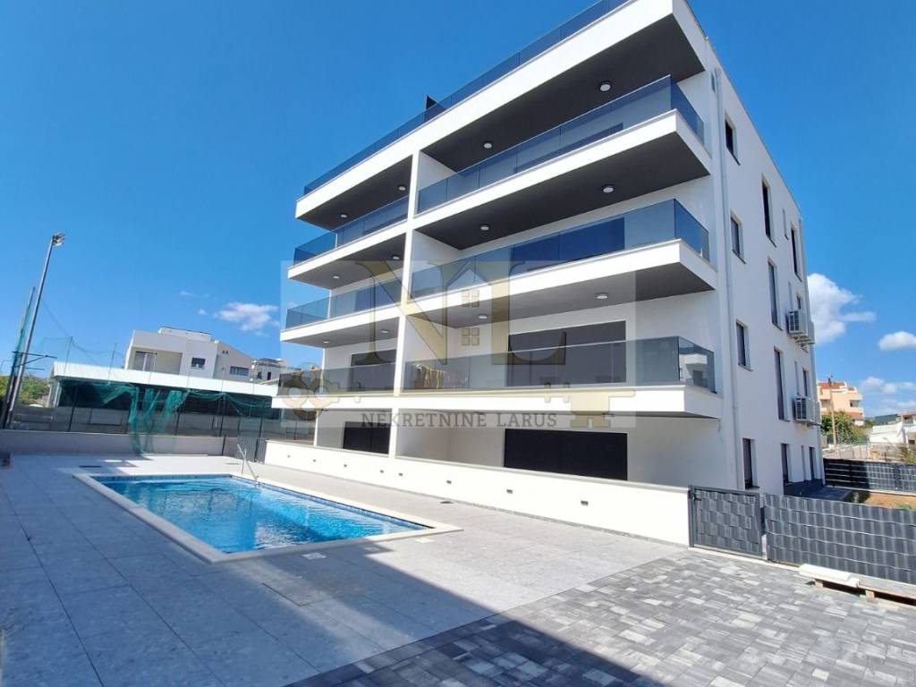 Penthouse with roof terrace, third floor, 250 m from the sea, S7 We are selling a penthouse apartment with a roof terrace, S7, located 250 meters from the sea and the beach in Okrug Gornji, island Čiovo. The penthouse apartment is located on the third floor of the building, facing south, with a panoramic view of the sea and the central Dalmatian islands. The building has 8 apartments, an elevator and an outdoor pool of 40 m2. Penthouse apartment with roof terrace S7, third floor consists of: 3 bedrooms, 2 bathrooms, kitchen with living room, balcony and roof terrace. Penthouse apartment S7 is south, south-west oriented. There is underfloor heating in the entire apartment, every room is air-conditioned, a selection of ceramics and sanitary ware as desired. The apartment has one outdoor parking space. Estimated completion of works 12/2024. Surfaces: - the inner part of the apartment 81.65 m2 - balcony 18.5 m2 - roof terrace 102 m2 Virtual walk: https://www.kuula.co/share/collection/7J221?logo=1&info=1&fs=1&vr=0&sd=1&autorotate=0.43&thumbs=1 Apartment prices: - S2 ground floor, south, southeast - 285,000 EUR - S3 first floor, south, southwest - 260,000 EUR - S4 first floor, south, southeast - 260,000 EUR - S5 second floor, south, southwest - 260,000 EUR - S6 second floor, south, southeast - 260,000 EUR - S7 third floor - penthouse with roof terrace, south, southwest - EUR 500,000 - S8 third floor - penthouse with roof terrace, south, southeast - 500,000 EUR