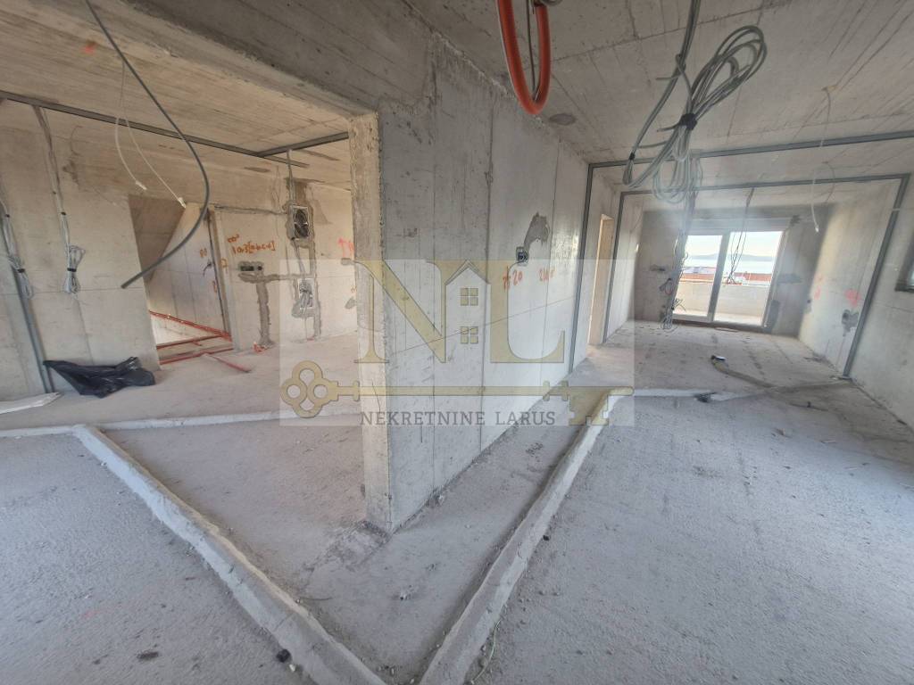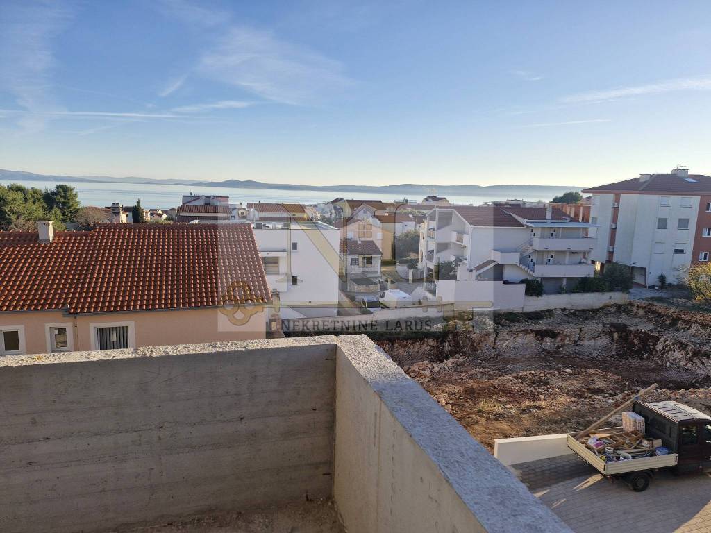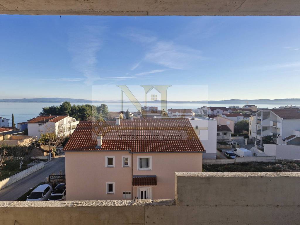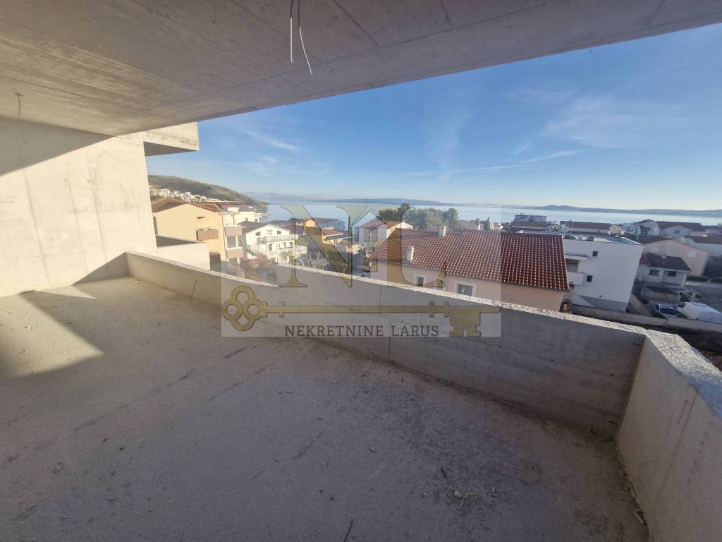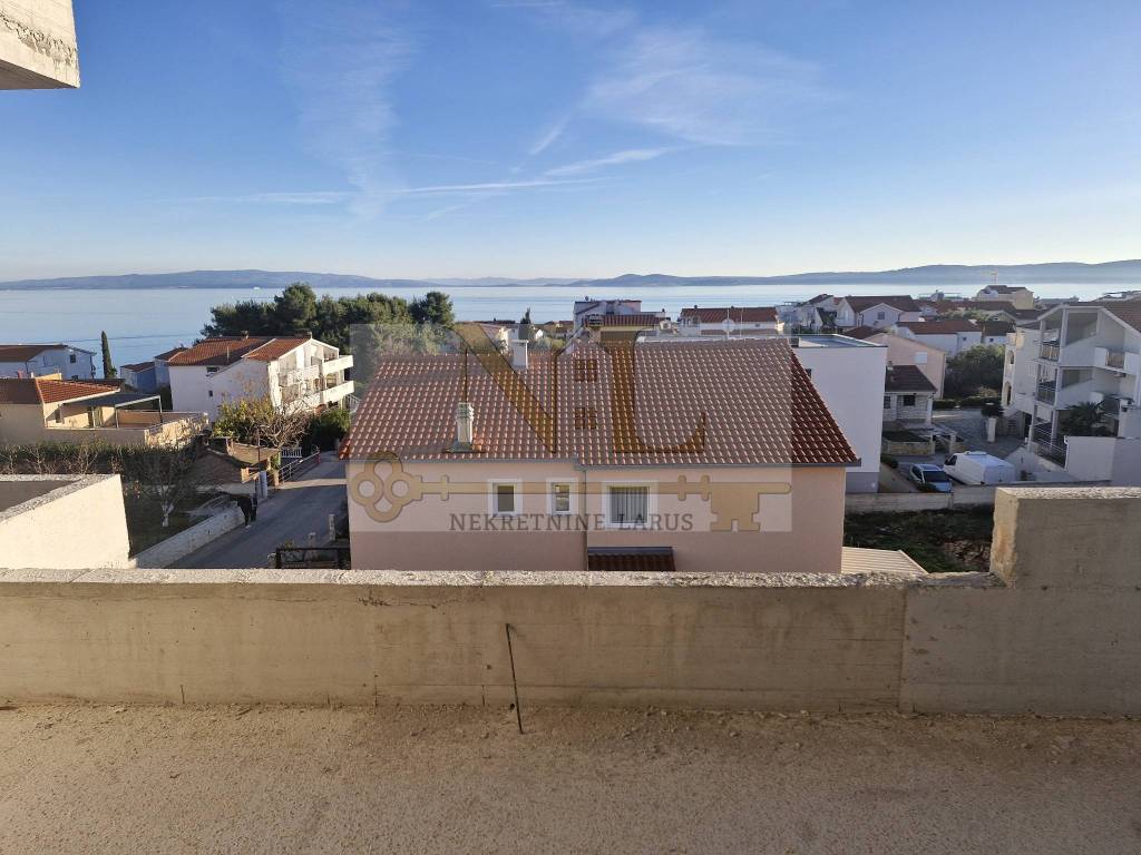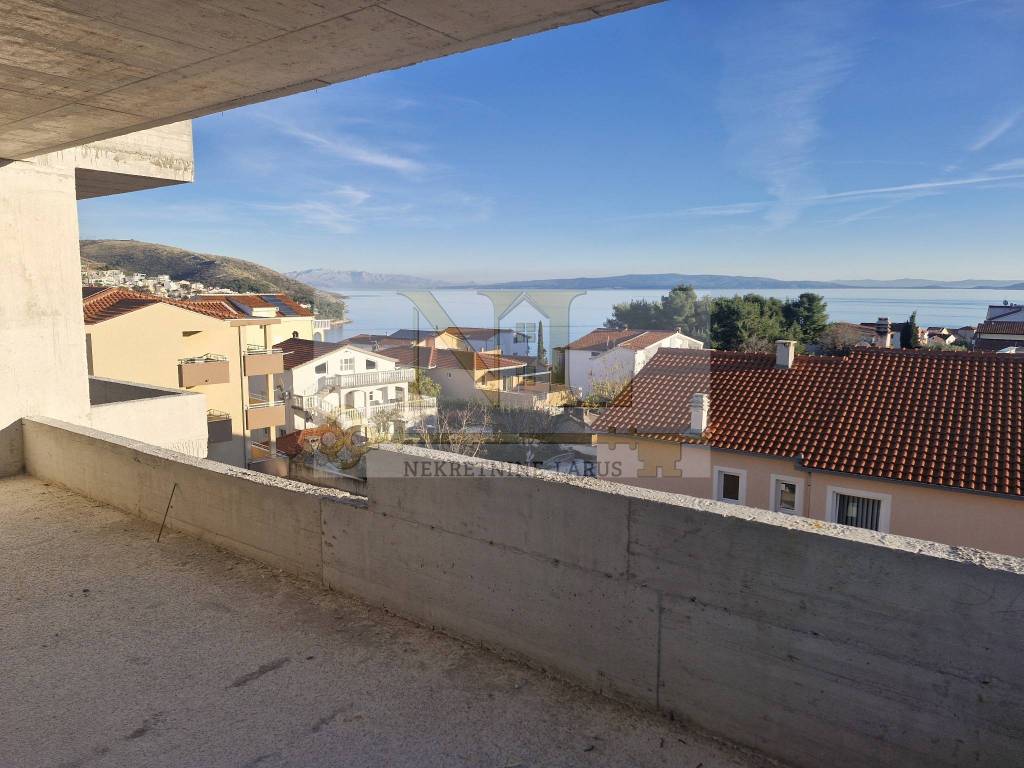 We are selling a penthouse apartment S7 with a roof terrace on the third floor of a new modern building, Okrug Gornji, island Čiovo. The building is located in a central location in Okrug Gornji with excellent access and a beautiful view of the sea, and all apartments have spacious south-facing balconies. The building is located 500 meters from the sea and the beach. The building has 8 apartments and 13 outdoor parking spaces, and has an elevator and a large communal pool. Penthouse apartment S7 with a roof terrace is located on the third floor of the building and consists of three bedrooms, two bathrooms, a storage room, a living room with a kitchen and a large terrace and a roof terrace with a panoramic view of the nearby archipelago. The apartment has two outdoor parking spaces. Surfaces: Interior area of the apartment: 83.4 m2 Terrace: 24 m2 Roof terrace: 109.6 m2 Total floor area: 217 m2