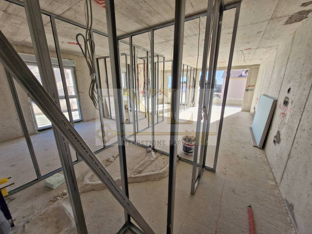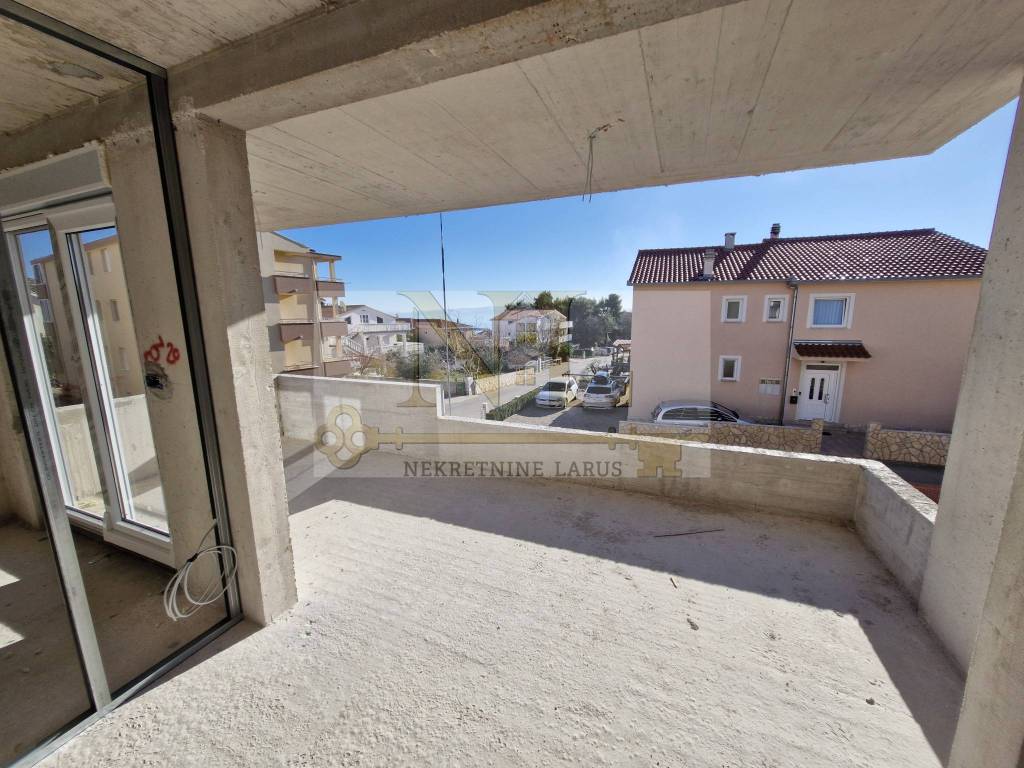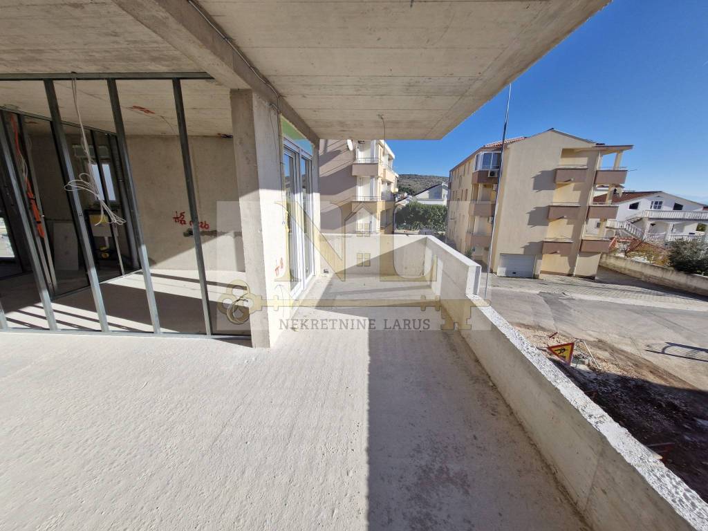 We are selling a two-room apartment S4 on the first floor of a new modern building, Okrug Gornji, island Čiovo. The building is located in a central location in Okrug Gornji with excellent access and a beautiful view of the sea, and all apartments have spacious south-facing balconies. The building is located 500 meters from the sea and the beach. The building has 8 apartments and 13 outdoor parking spaces, and has an elevator and a large communal pool. Apartment S4 is located on the first floor of the building and consists of two bedrooms, two bathrooms, a living room with a kitchen and a terrace. One outdoor parking space belongs to the apartment. Surfaces: Interior area of the apartment: 55.46 m2 Terrace: 14.63 m2 Total floor area: 70.09 m2