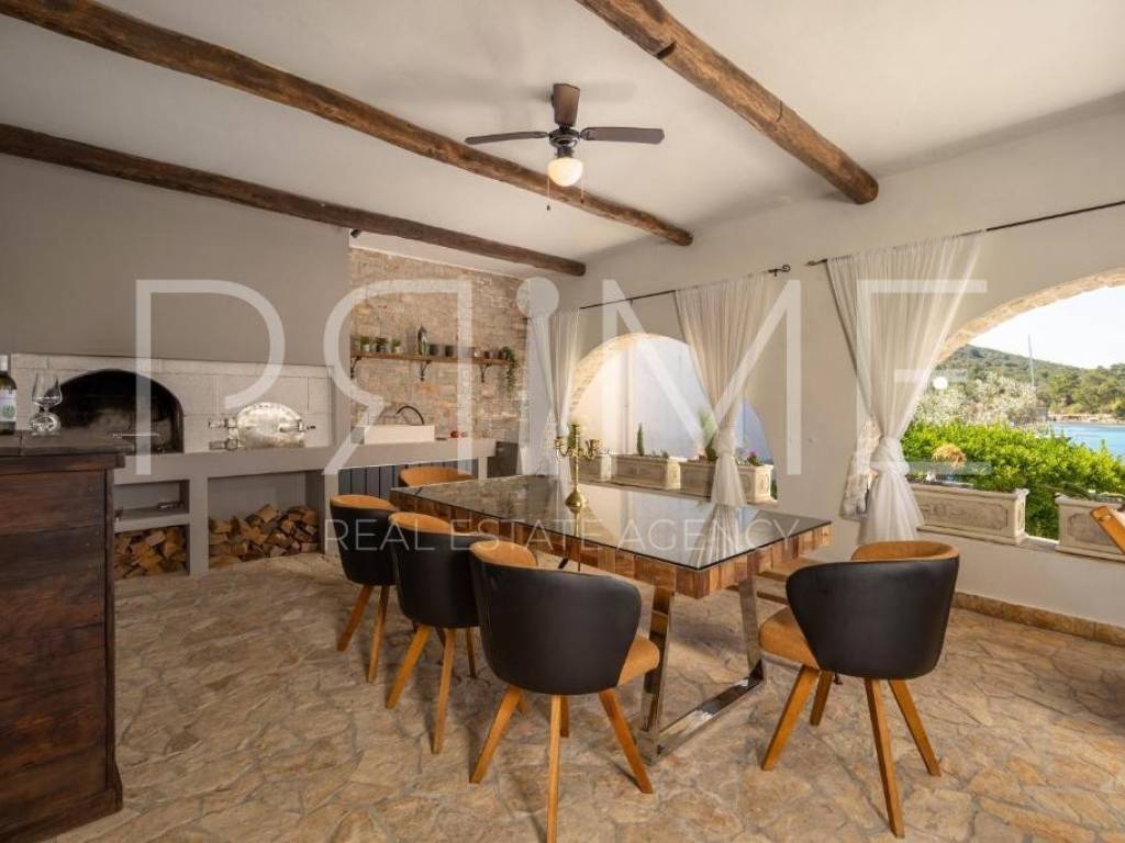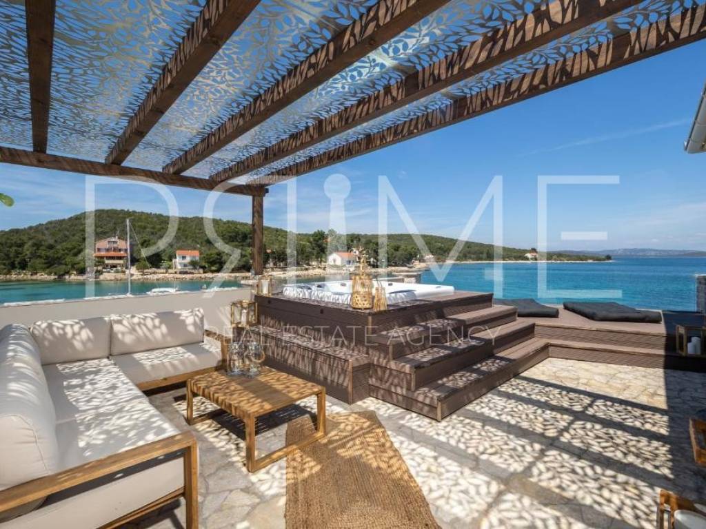 Na prodaju ekskluzivna samostojeća vila smještena u prestižnoj lokaciji, u prvom redu do mora, neposredno uz marinu, u jednom od najljepših dijelova zadarskog arhipelaga. Ova jedinstvena nekretnina pruža potpunu privatnost, direktan kontakt s morem te otvoren panoramski pogled na more, otoke i okolne planine. Vila je kompletno i luksuzno renovirana 2022 godine te predstavlja spoj elegancije, komfora i vrhunske investicijske prilike, s već uhodanim i stabilnim prihodima od turističkog najma.