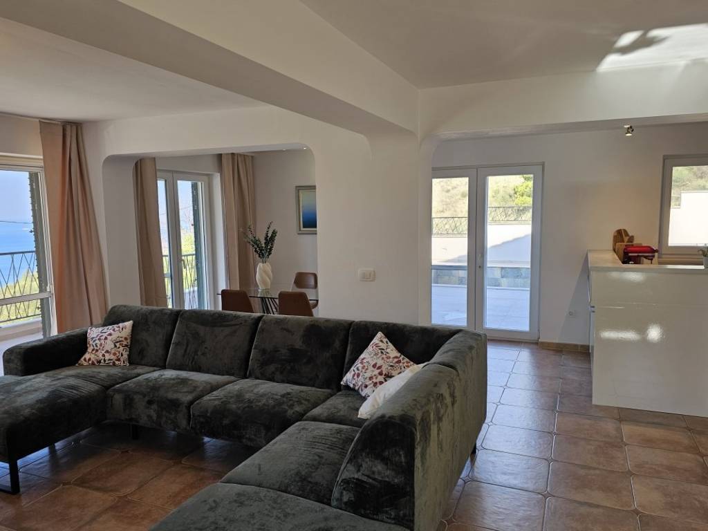 The second floor is reached by an internal staircase and there are bedrooms, some of which have access to a terrace with a stunning sea view. The house has a total of three bathrooms.