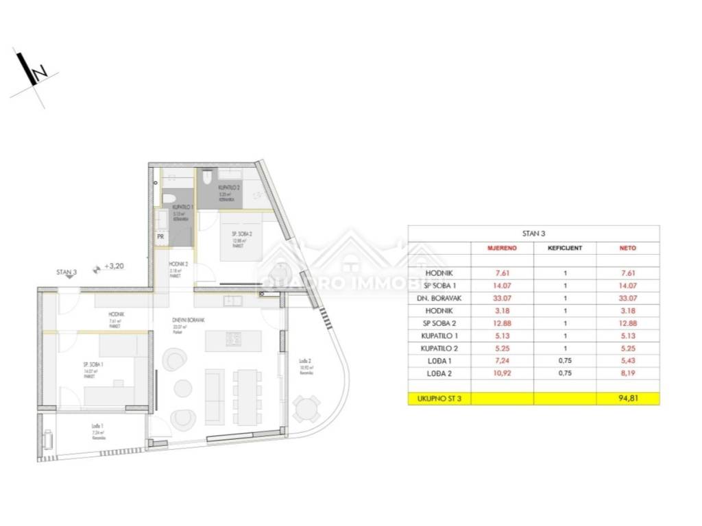 We are selling a modern two-room apartment with a sea view. The facility is located in a quiet location, close to all facilities. The apartment with a net area of 94.81 m2 is located on the first floor and consists of an "open space" concept living room with kitchen and dining room, two bedrooms, two bathrooms, loggia 1 (7.24 m2), loggia 2 (10.92 m2). m2) with a view of the sea. The apartment also has one parking space measuring 12.50 m2. The facility is built from quality building materials, aluminum joinery, blinds and mosquito nets, air conditioners, 1st class ceramics, heat pumps, underfloor heating and a charging station for electric vehicles. The building has an elevator. Estimated completion of work 01.09.2024. years. This state-of-the-art building offers the perfect combination of luxury, contemporary style and comfort.