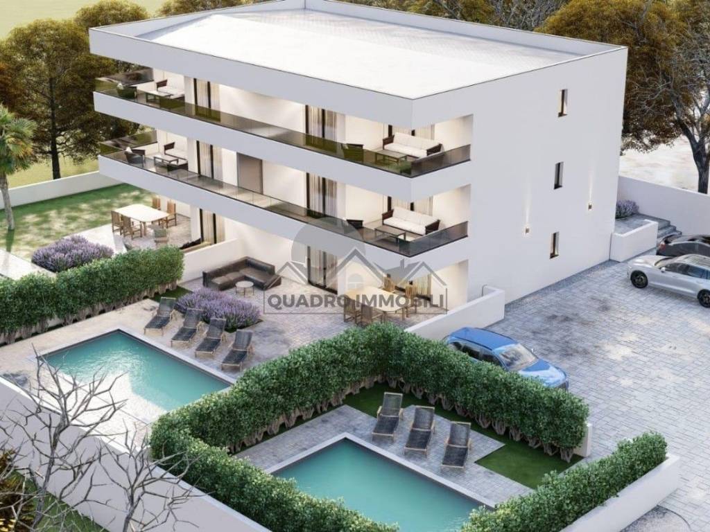 We offer a new two-room apartment with a sea view. It is located on the 2 floor of a brand new building with six apartments and occupies 80 m2 of living space. The premises are perfectly planned and include an entrance hall, storage room, two bathrooms, two bedrooms, spacious living room with kitchen and dining room with access to a covered terrace with a beautiful view of the sea. The apartment has one parking space. Quality construction and equipment, selection of quality ceramics and floor coverings, modern sanitary ceramics, PVC furniture, underfloor heating in bathrooms, air-conditioned heating/cooling system. It is located in an excellent location, only 700 m from the sea, beaches and all amenities.