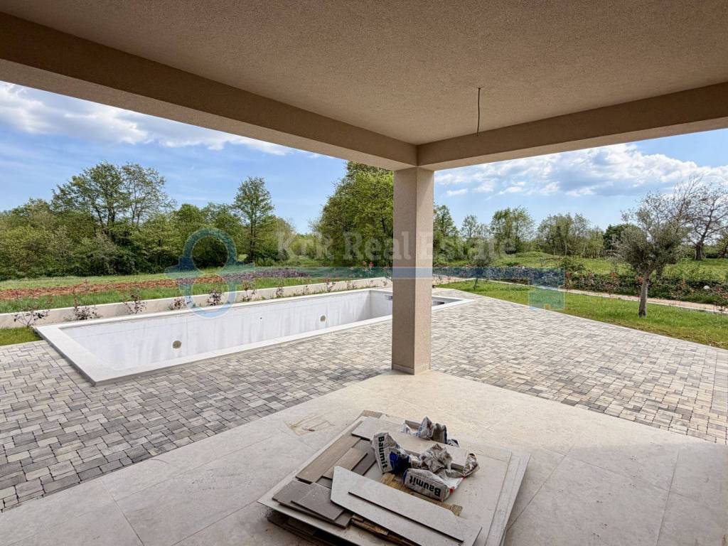 For sale is a detached house (new construction) with a living area of 170 m2. It consists of a ground floor with a living room, a kitchen and a dining room, a bedroom, a bathroom and a large terrace, and an upper floor with two bedrooms with their own bathrooms. It has a garden area of 410 m2 with a swimming pool and several parking spaces. It is located in a quiet area.