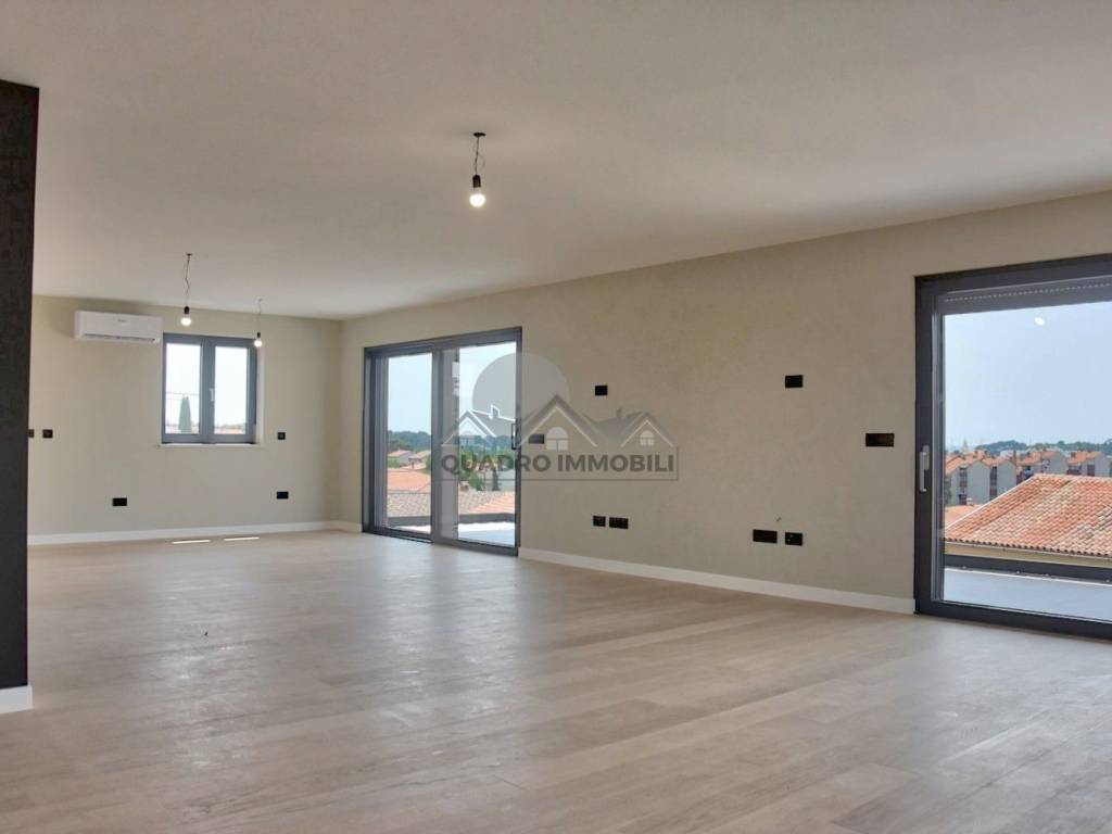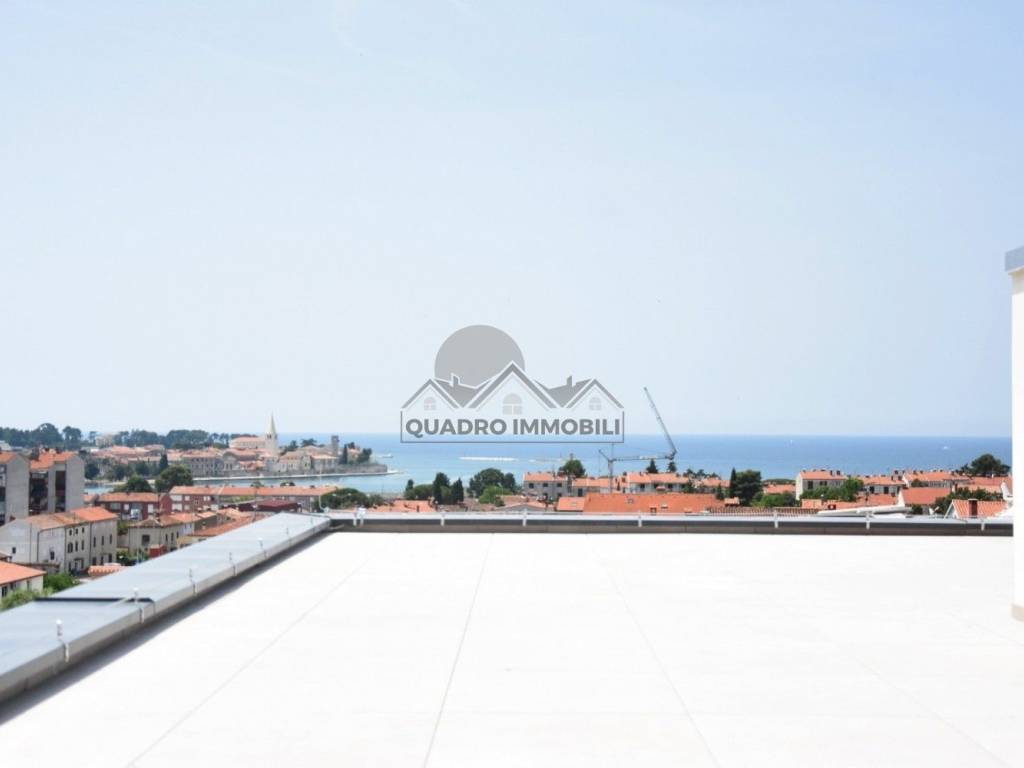The penthouse consists of a large living room of 68 m2, 5 bedrooms; each bedroom has its own bathroom. A beautiful covered terrace of 29 m2 with a divine 180-degree open view of the sea and the 1400-year-old town of Poreč. The large roof terrace of 188 m2 gives a feeling of strength and power because it is located above all the other houses and has an unobstructed and open view of the sea and the old town. Connections have been left on that roof terrace so that a summer kitchen, shower and jacuzzi can be installed. Penthouse is actually like a house for someone who doesn't like to deal with the garden and doesn't want to have maintenance costs, watering costs and grass cutting costs. High quality of construction and availability of all facilities; shopping, cultural, educational and recreational facilities necessary for quality family life are the elements that adorn this penthouse in this urban building with only 5 apartments. Arriving in the garage with your car, you can take the elevator to the penthouse. The owner of the penthouse has a key to take the elevator to the penthouse and can only use it; other tenants cannot. The penthouse is sold unfurnished, the only thing that is equipped are the bathrooms.