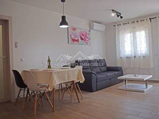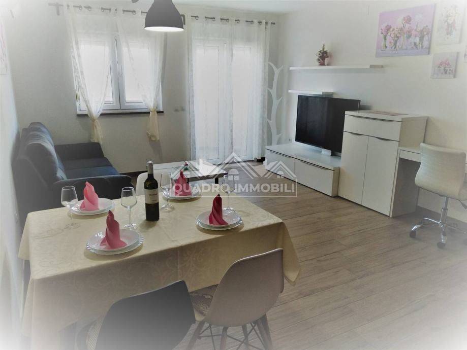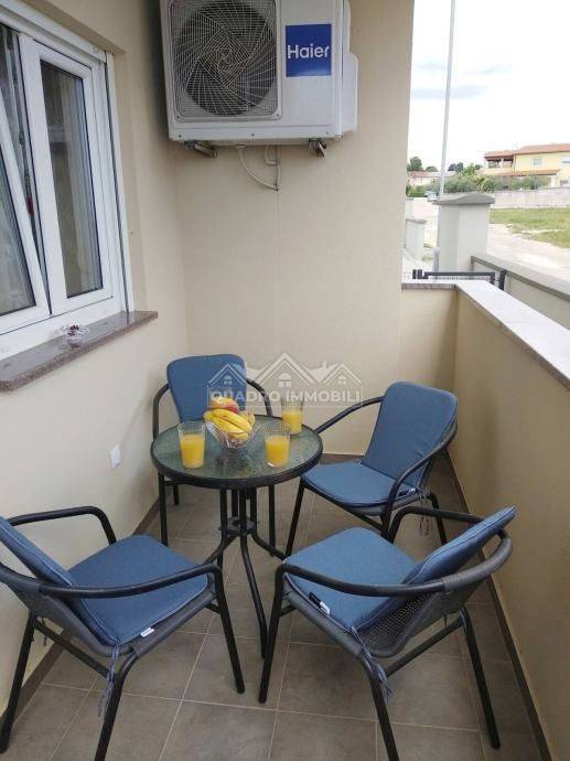 Apartment for sale on the ground floor in a building with 2 floors without encumbrances with proper ownership papers (ownership 1/1). The apartment is 74.2 m2 in size, of which the living area is 68 m2 and the terrace is 6.20 m2. The apartment has two bedrooms, a living room with a kitchen and a bathroom with toilet and balcony. It has two air conditioners for heating and cooling. The apartment is sold fully furnished and has 2 parking spaces. The apartment also has a small garden in front of the balcony. The balcony has a sea view of the beaches in Fažana.