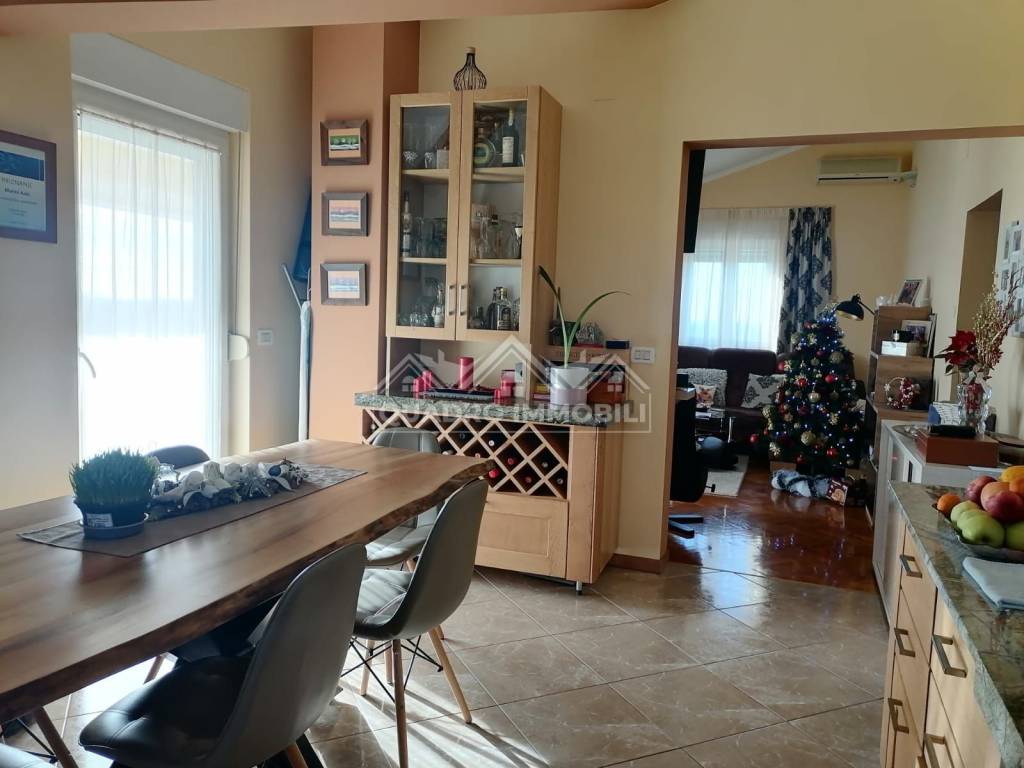 Apartment of 80m2 fully furnished with quality furniture used for private purposes. It is located in Savudrija, 800m from the beautiful beaches of Savudrija, lighthouse and port where you can buy fresh fish from local fishermen. The apartment has a living room with kitchen and dining area (open space), 2 bedrooms, one of which has its own bathroom, another large bathroom, 2 terraces with a view of the sea and a hallway. The apartment has 2 parking spaces, one of which is covered, and a piece of garden. Heating and cooling is with air conditioning. The building is built with quality in which there are 5 more tenants and this apartment covers the entire 2nd floor. The apartment is comfortable for year-round stay or for rental for tourist purposes.