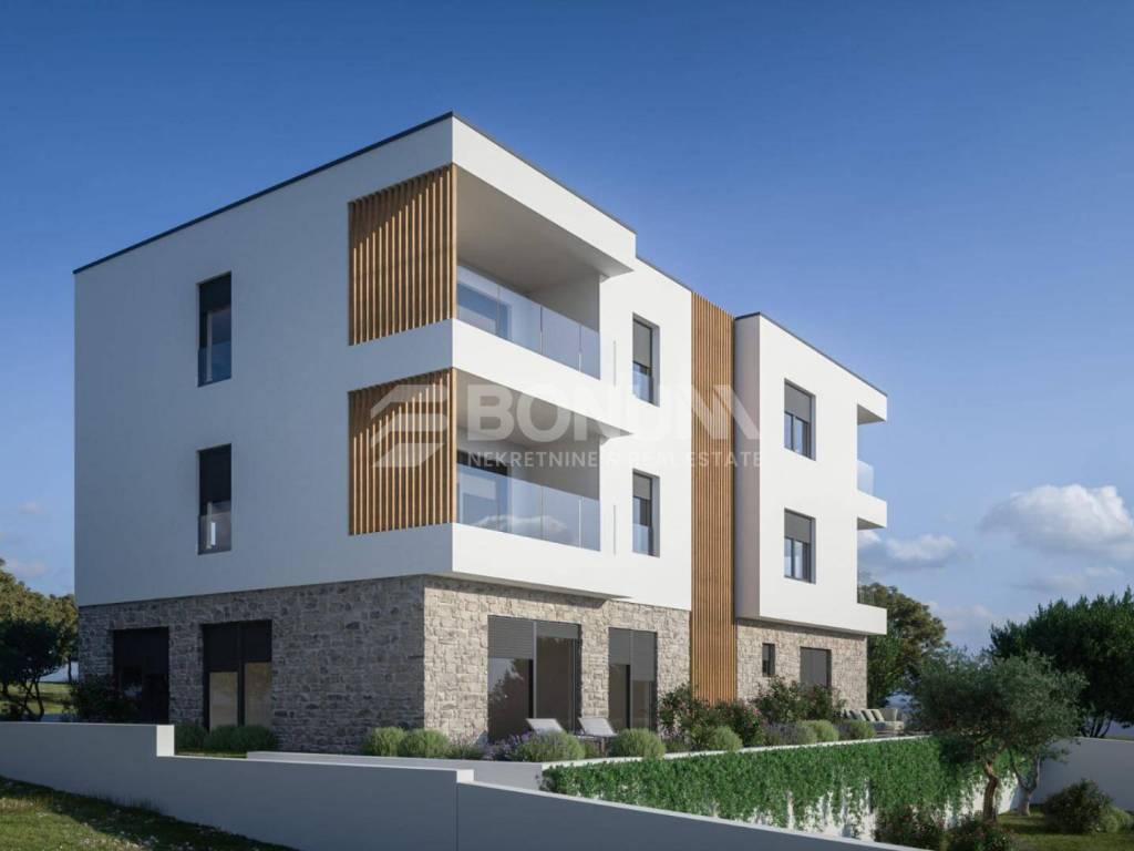 A modern apartment on the second floor of a newly constructed building is offered, located in the first row to the sea, in an exceptionally attractive location in Brodarica near Šibenik. The apartment has been carefully designed in order to ensure an optimal layout of the rooms and maximum living comfort.