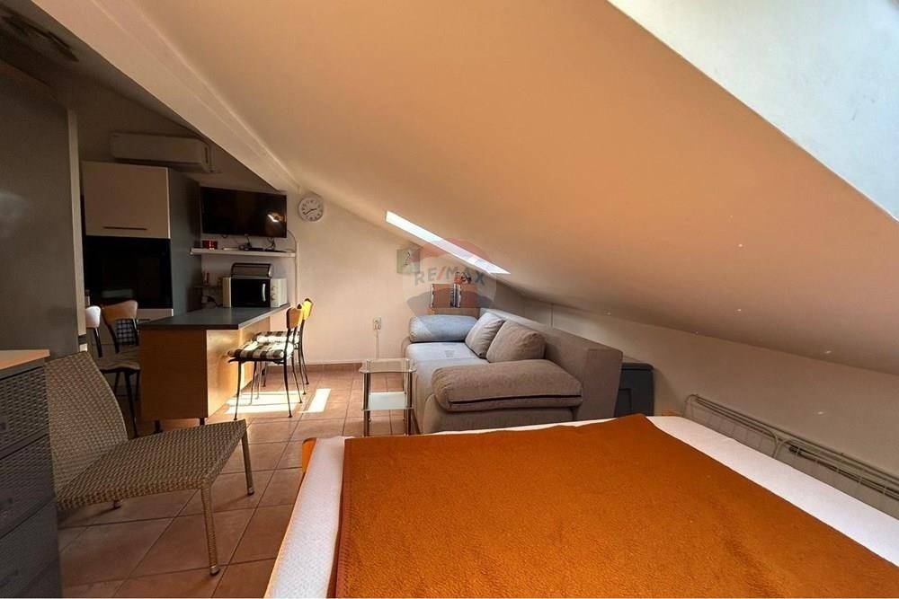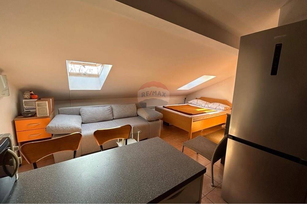 The second apartment is located in the attic, with a calculated area of 8.46 m (actual area approx. 25 m) and is furnished as a studio apartment.