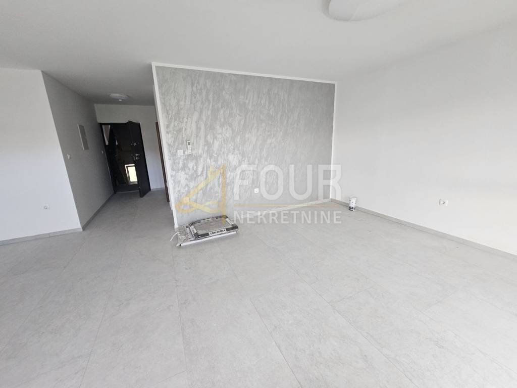 We offer an apartment on the 1st floor of a new building in Srdoči! The apartment consists of a spacious kitchen with a living room, a bedroom, a hallway, a bathroom, a balcony and a roof terrace of approx. 50m2. The apartment has one parking space and is equipped with air conditioning and PVC joinery.